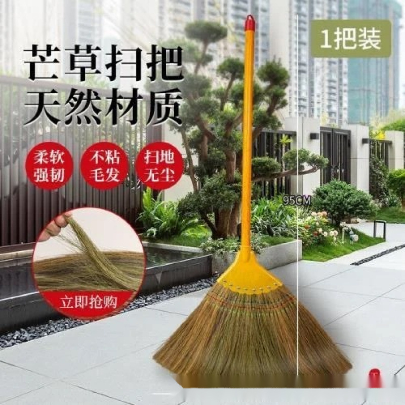 Mang Broom 가정용 청소 빗자루 부드러운 머리카락 붙지 않는 머리카락 구식 수수 빗자루 마당 야외 단일 빗자루스토어 가기