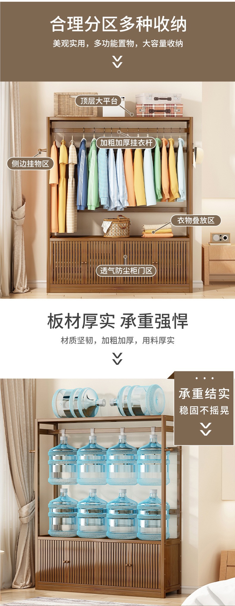 옷을 걸 수 있는 간단한 옷장, 침실 원목 코트 랙, 새로운 중국식 일체형 임대 주택 다기능 수납 옷장스토어 가기