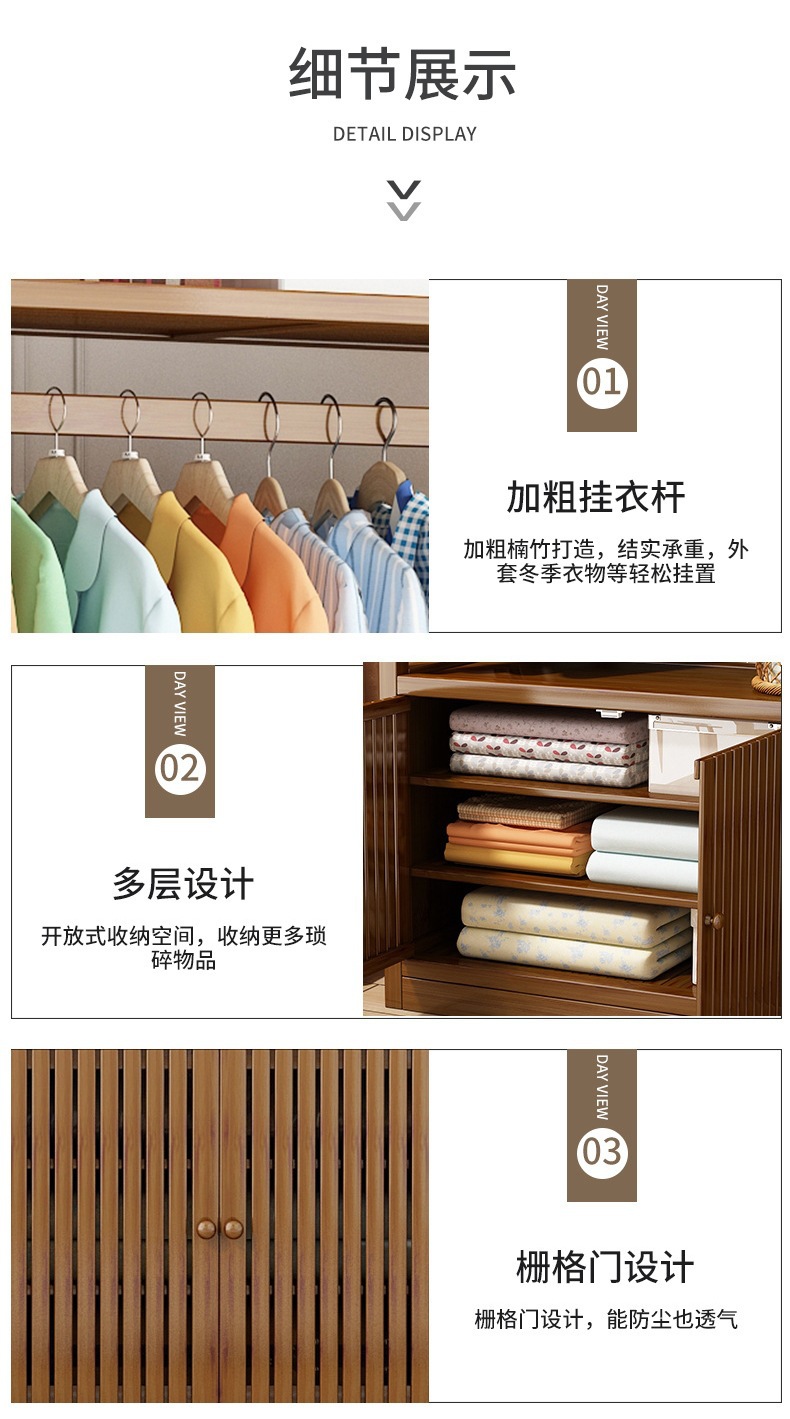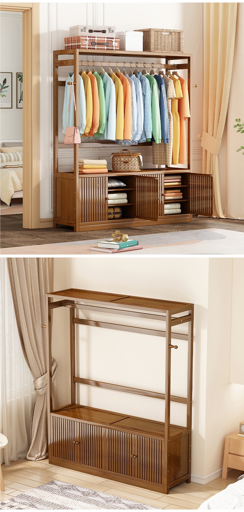 옷을 걸 수 있는 간단한 옷장, 침실 원목 코트 랙, 새로운 중국식 일체형 임대 주택 다기능 수납 옷장