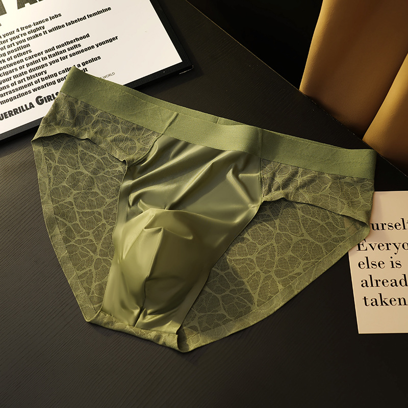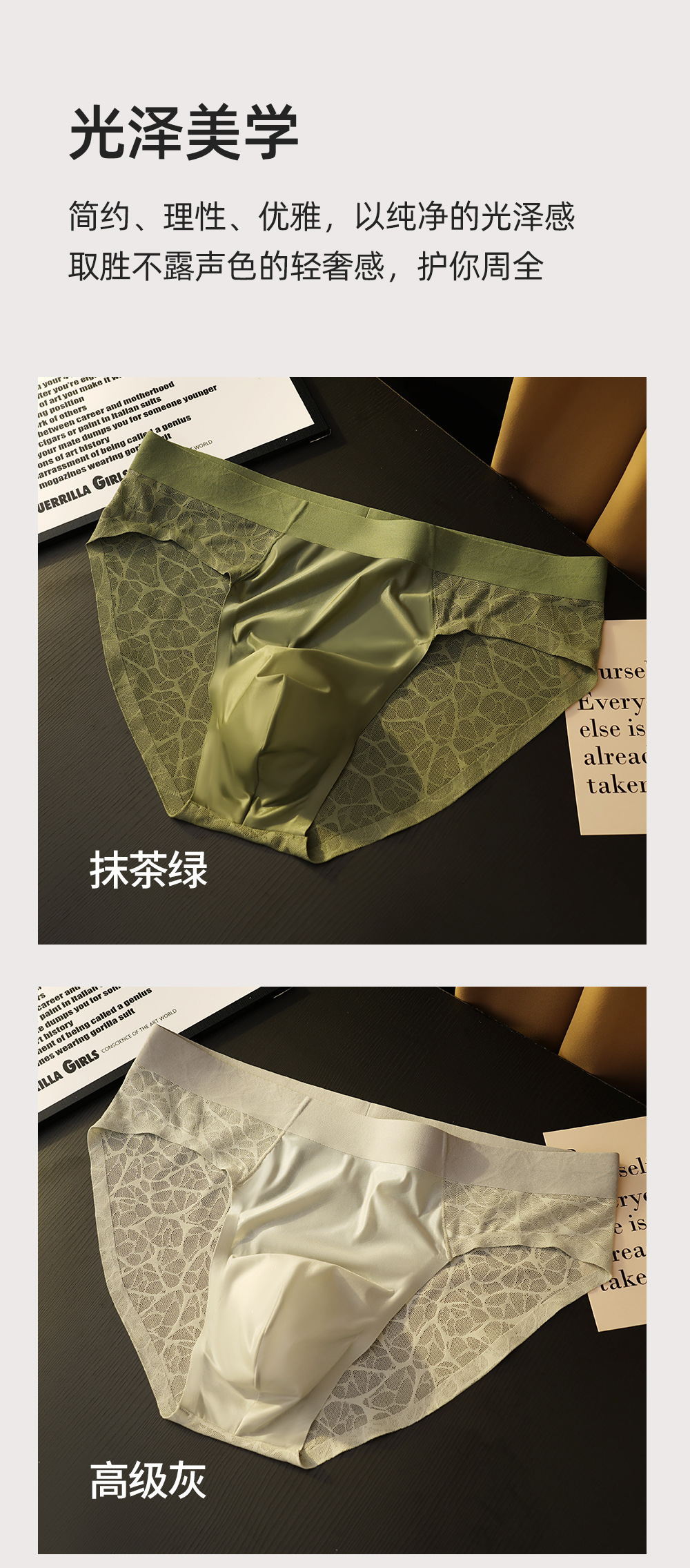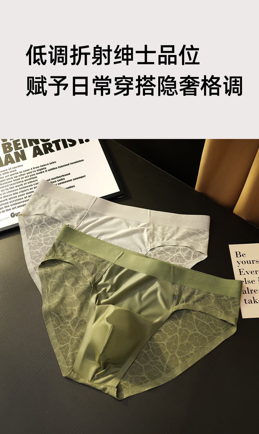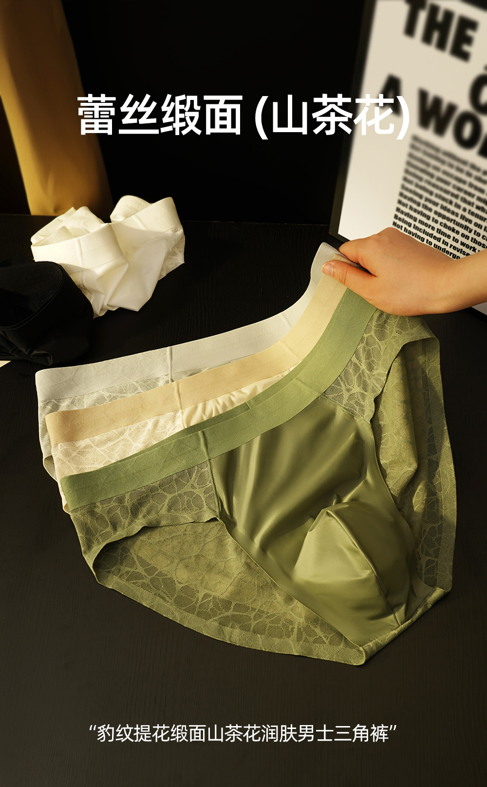 2025 오일리 10A 동백 향기 얼음 느낌 레이스 레오파드 자카드 섹시한 남성용 얼음 실크 단일 레이어 팬티