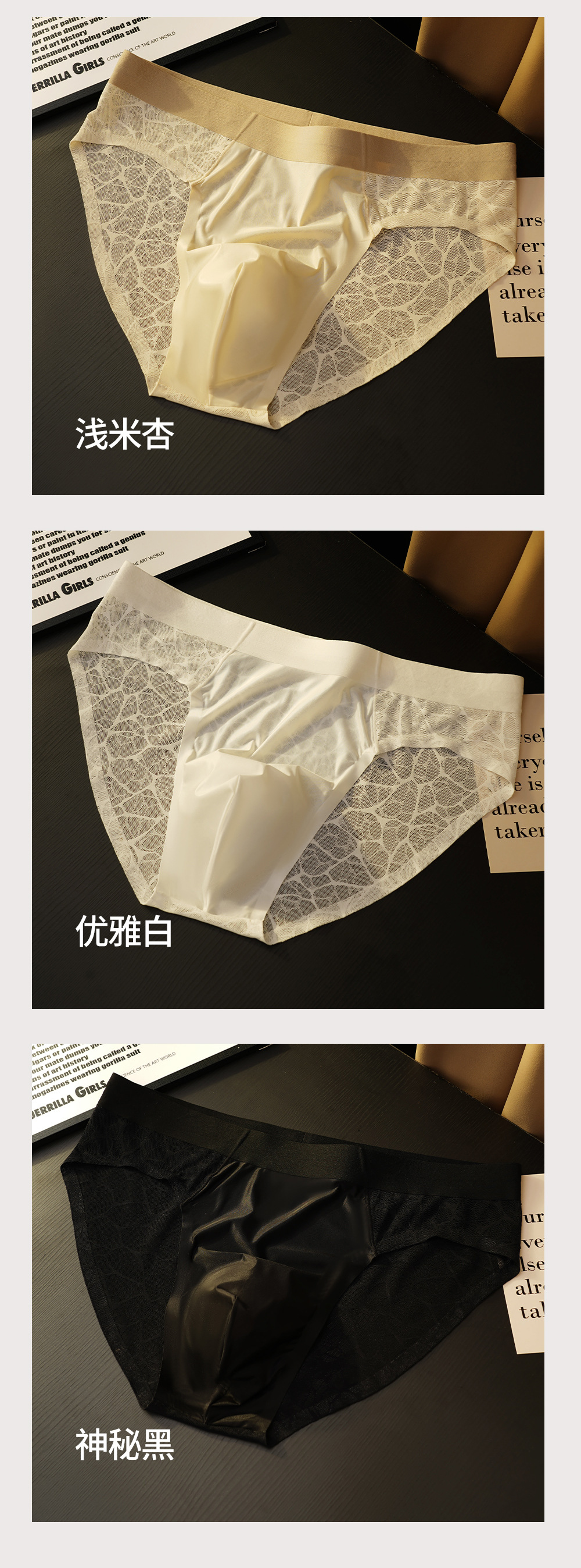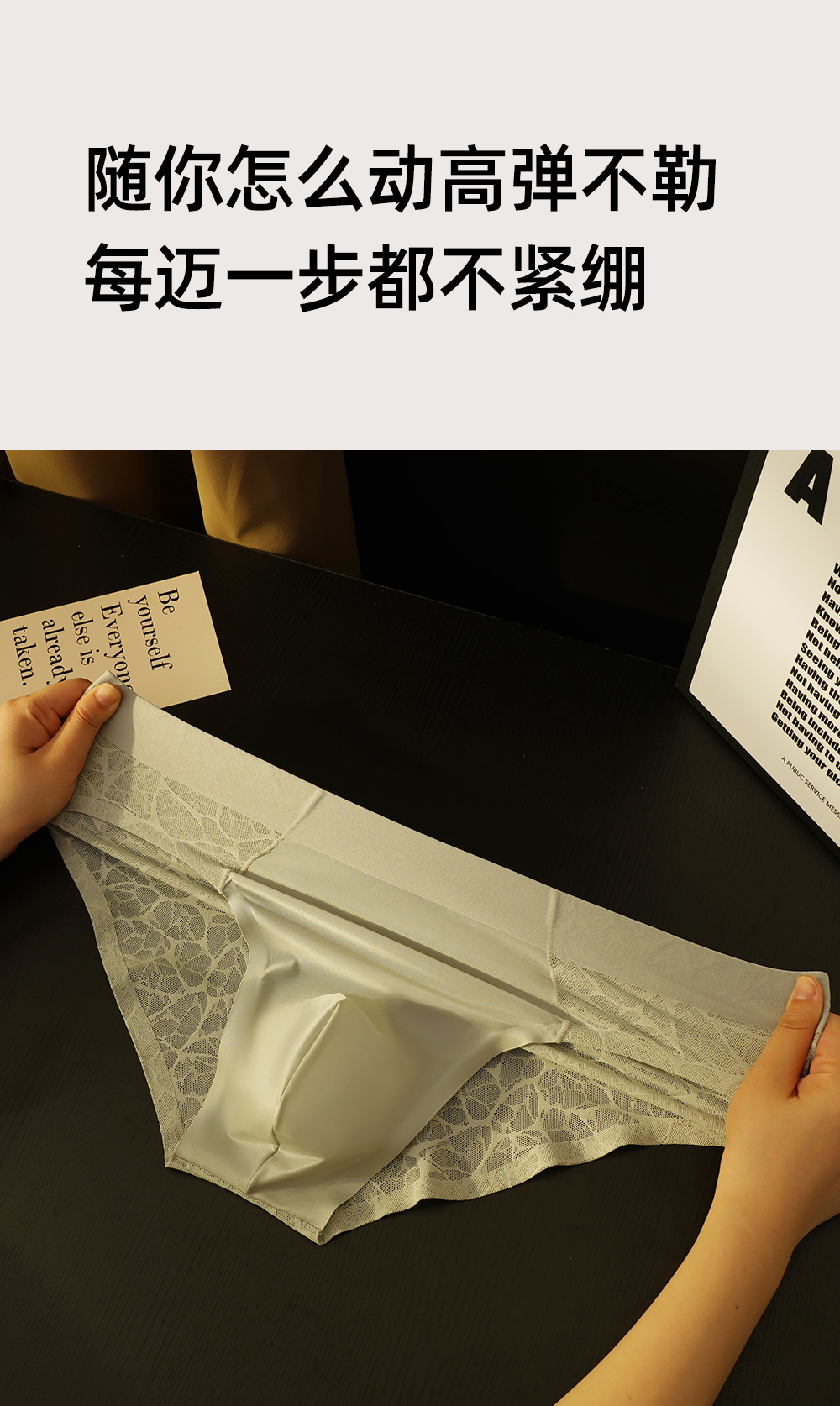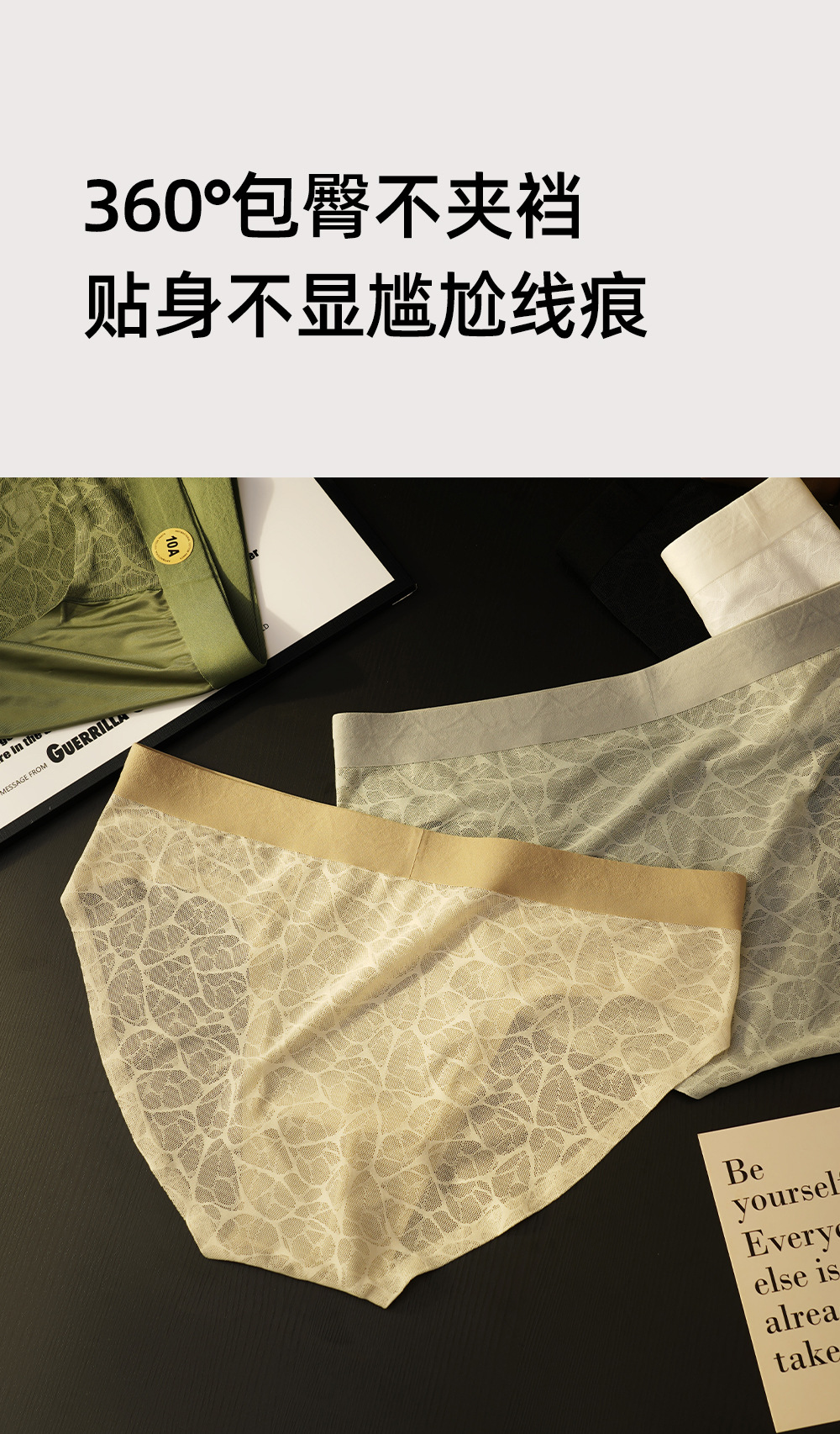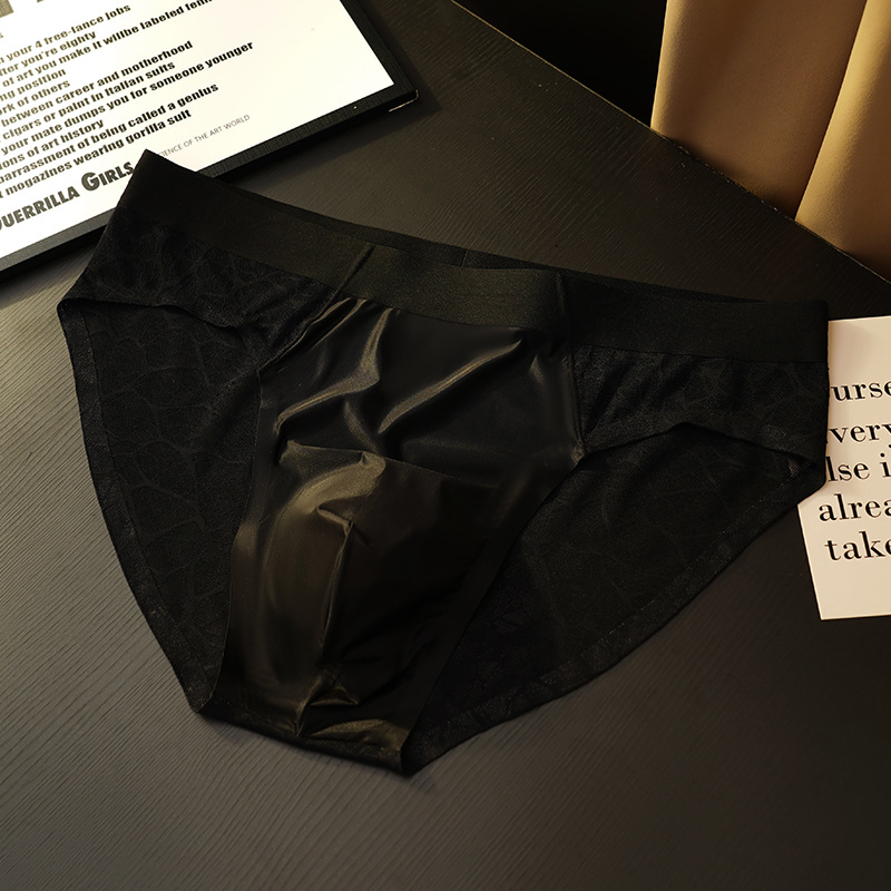 2025 오일리 10A 동백 향기 얼음 느낌 레이스 레오파드 자카드 섹시한 남성용 얼음 실크 단일 레이어 팬티