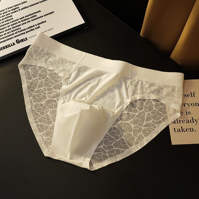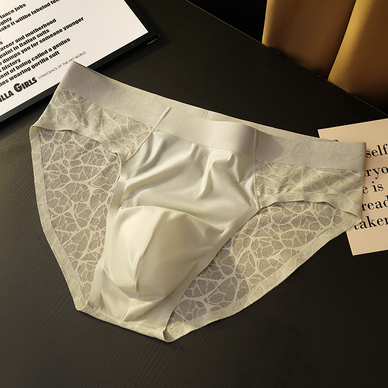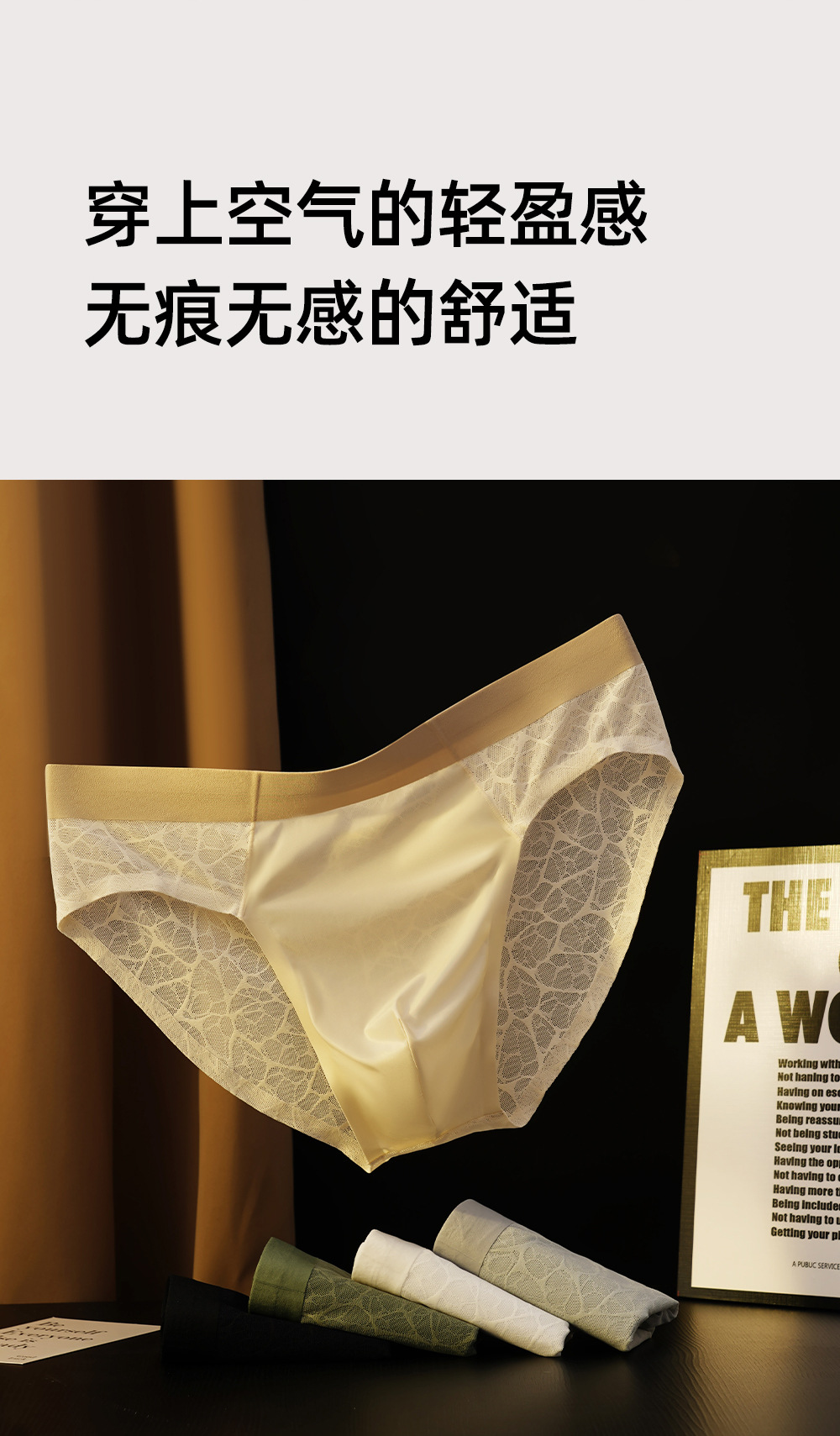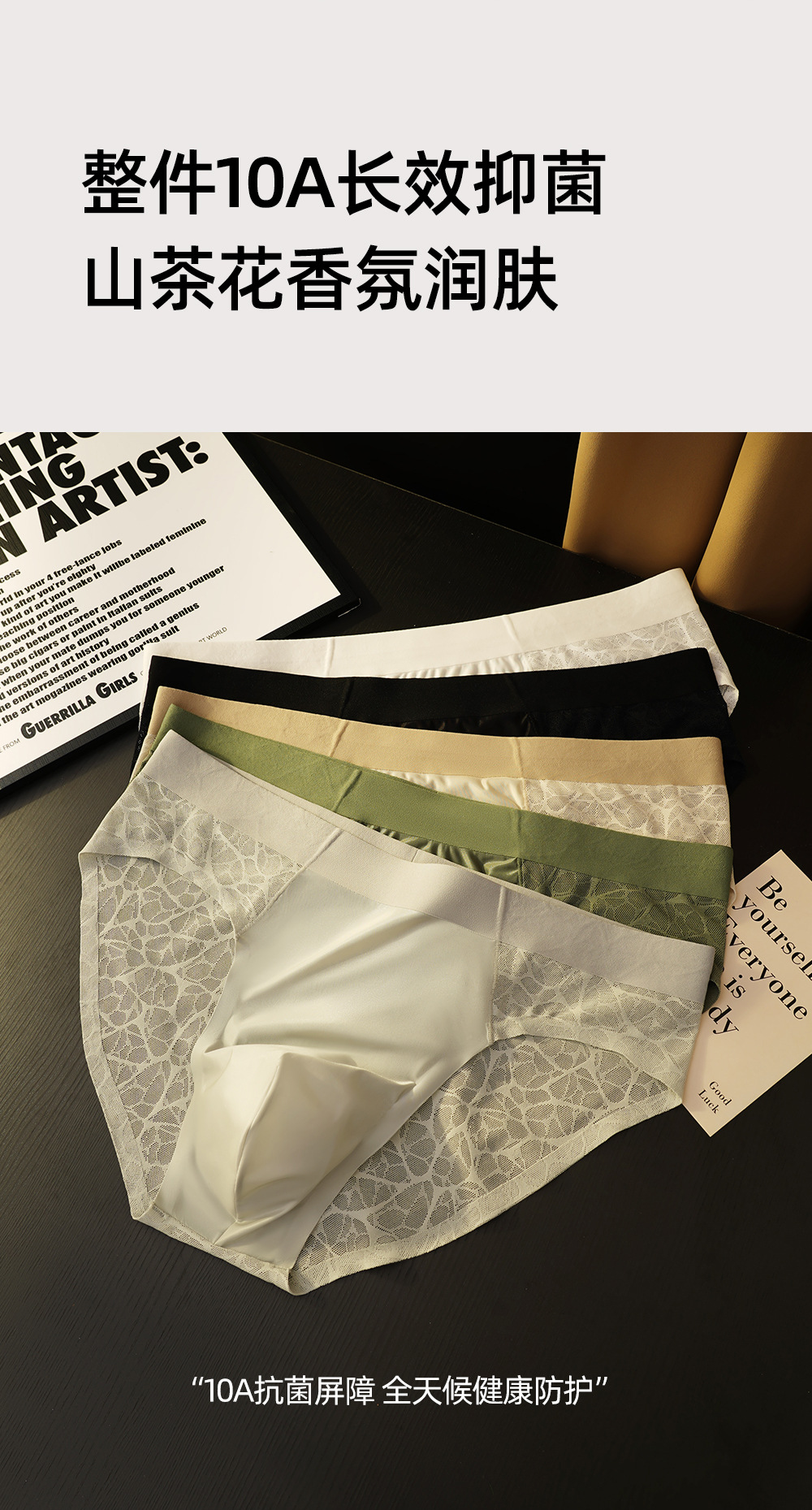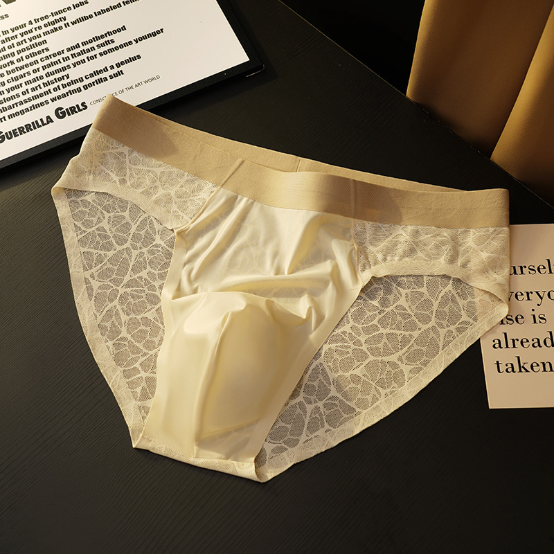 2025 오일리 10A 동백 향기 얼음 느낌 레이스 레오파드 자카드 섹시한 남성용 얼음 실크 단일 레이어 팬티