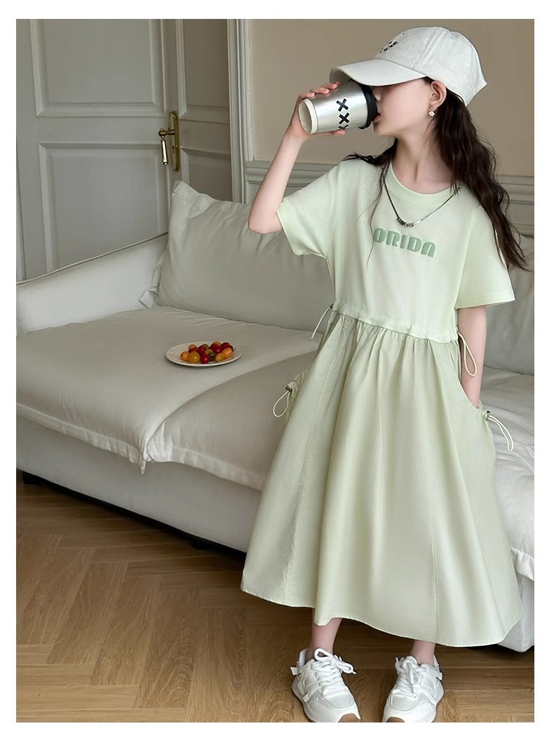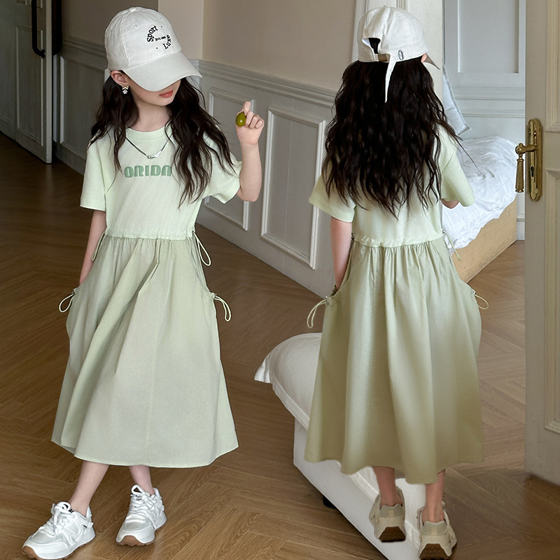 여자 여름 드레스 2028 새로운 유행 큰 어린이 공주 드레스 어린이 어린 소녀 여름 캐주얼 스커트스토어 가기