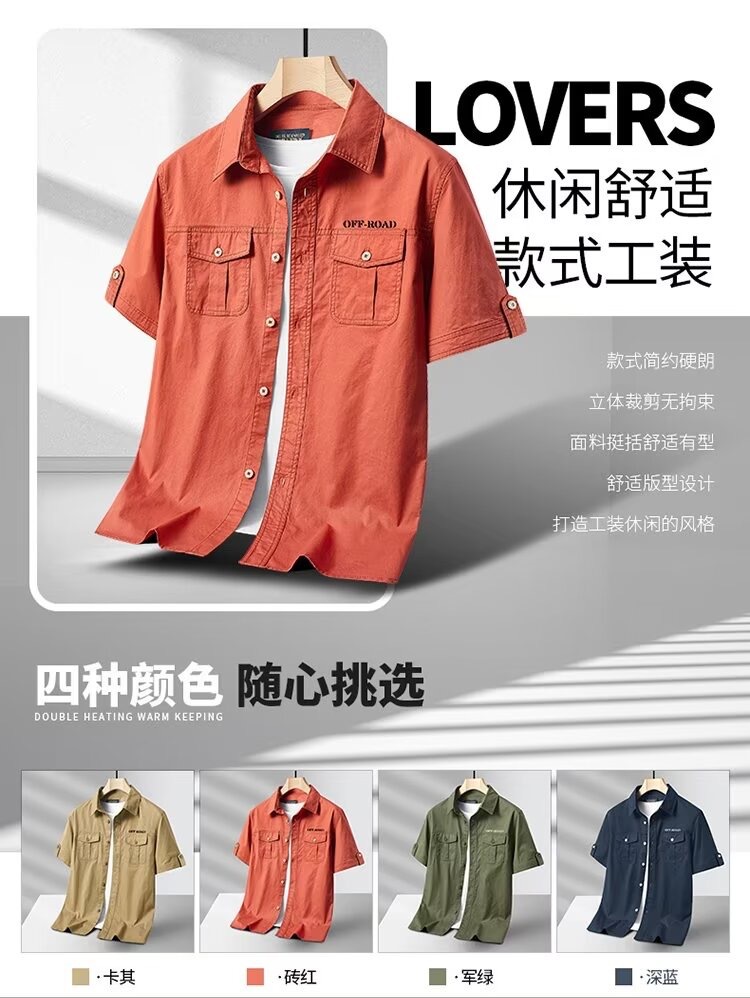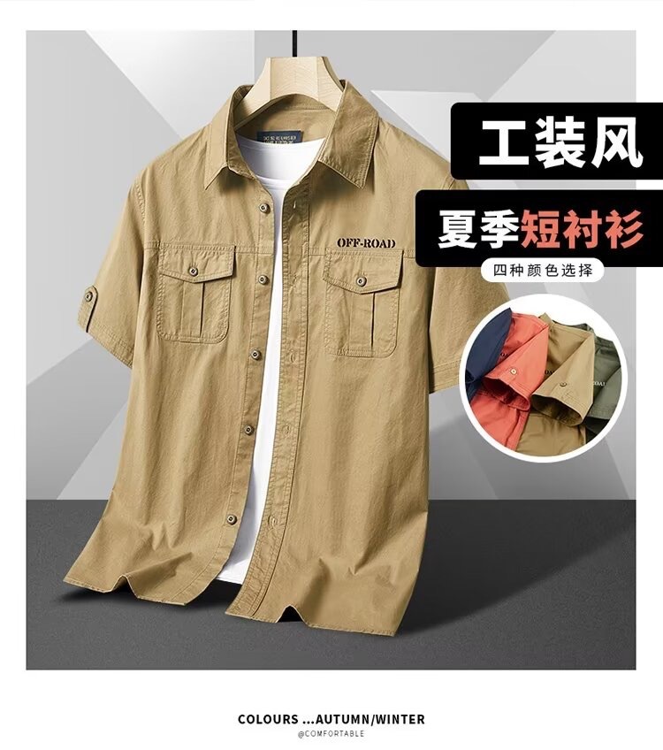 남성용 캐주얼 반팔 셔츠 속건성 여름 신작 미국 군복 중년 및 노인 남성용 멀티 포켓 얇은 셔츠스토어 가기