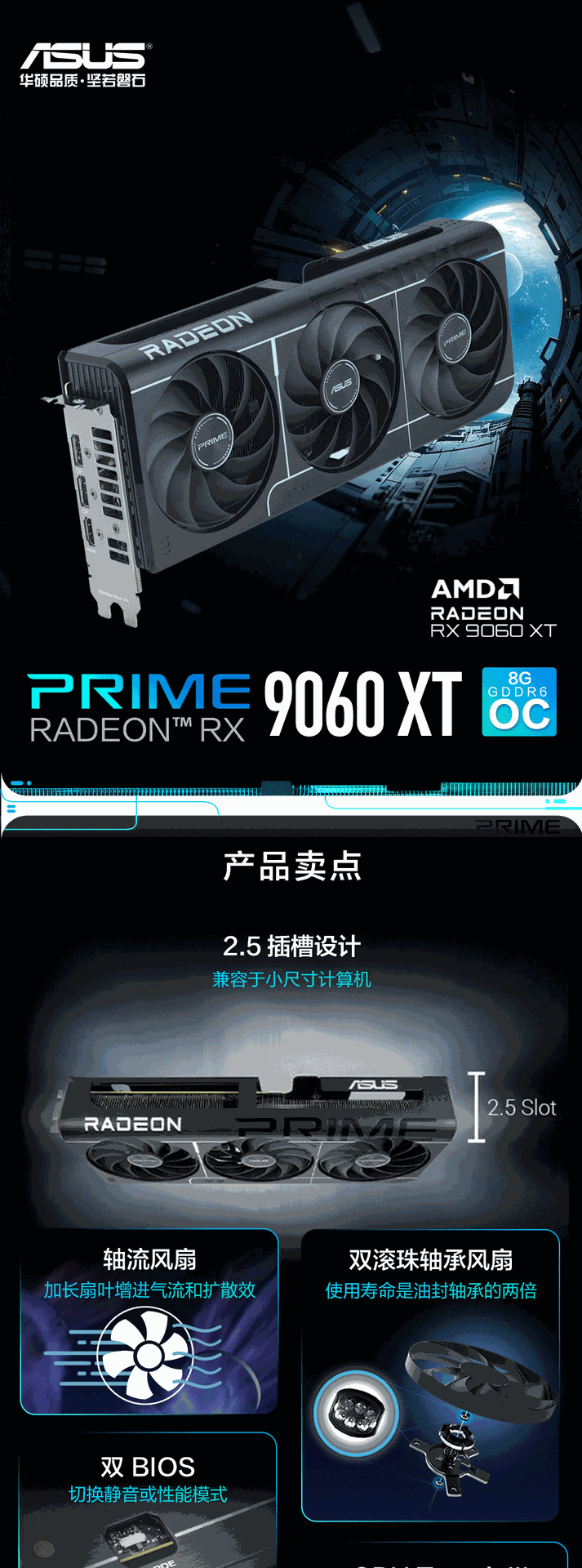 ASUS Prime Radeon에 적합 ™ RX 9060 XT O8GB GDDR6 새로운 정품 공동 보증스토어 가기