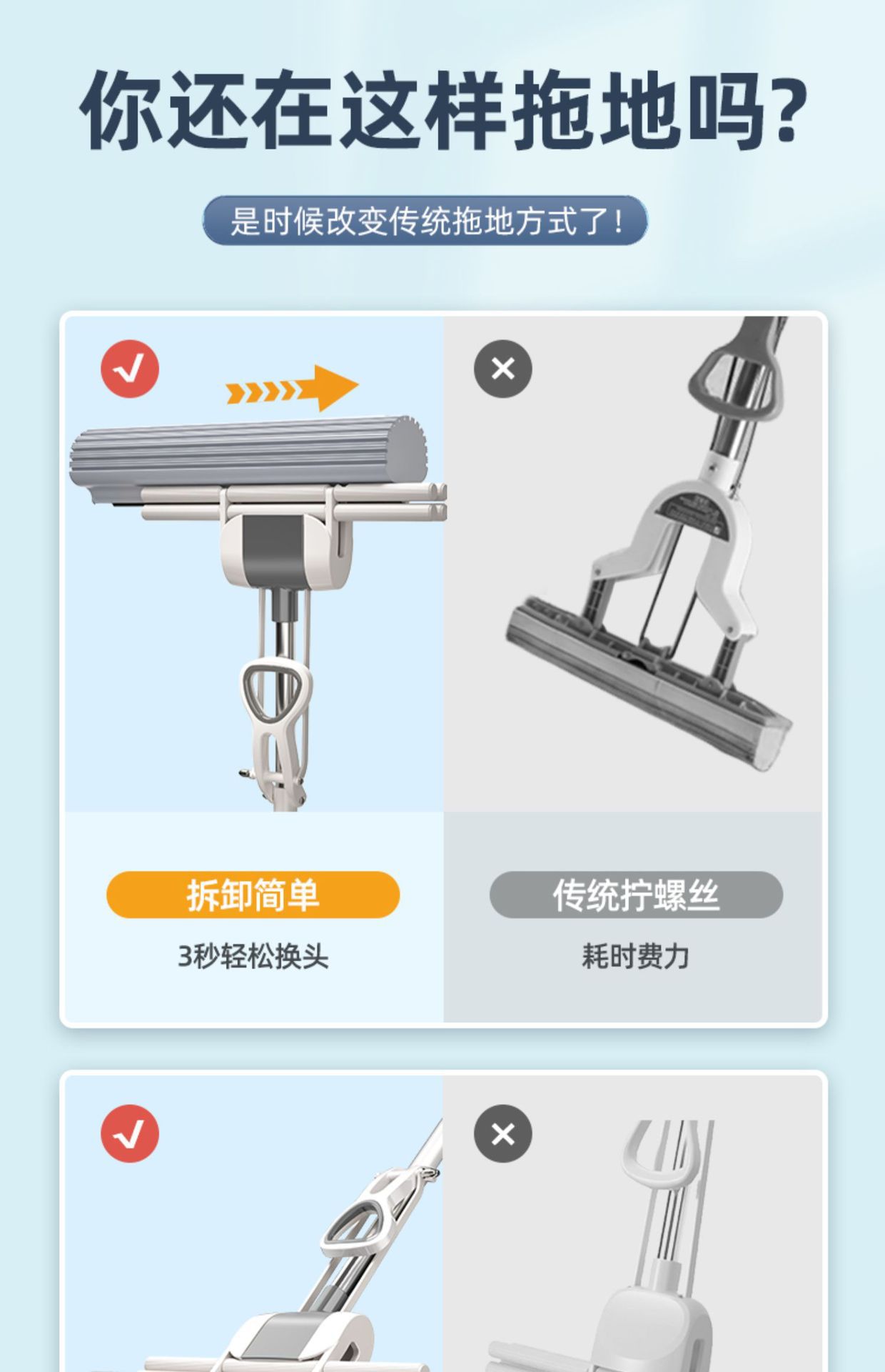 걸레 스펀지 걸레 롤러형 가정용 물짜짐 핸즈프리 코티지 면 걸레 대형 걸레 물 흡수 경량 원걸레스토어 가기