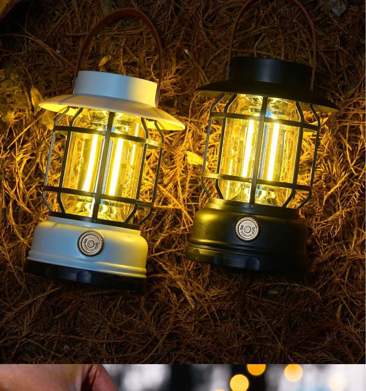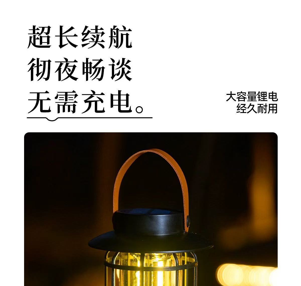 새로운 태양 캠핑 램프 야외 텐트 램프 분위기 긴 배터리 수명 복고풍 말 랜턴 조명 충전식 캠핑 램프스토어 가기