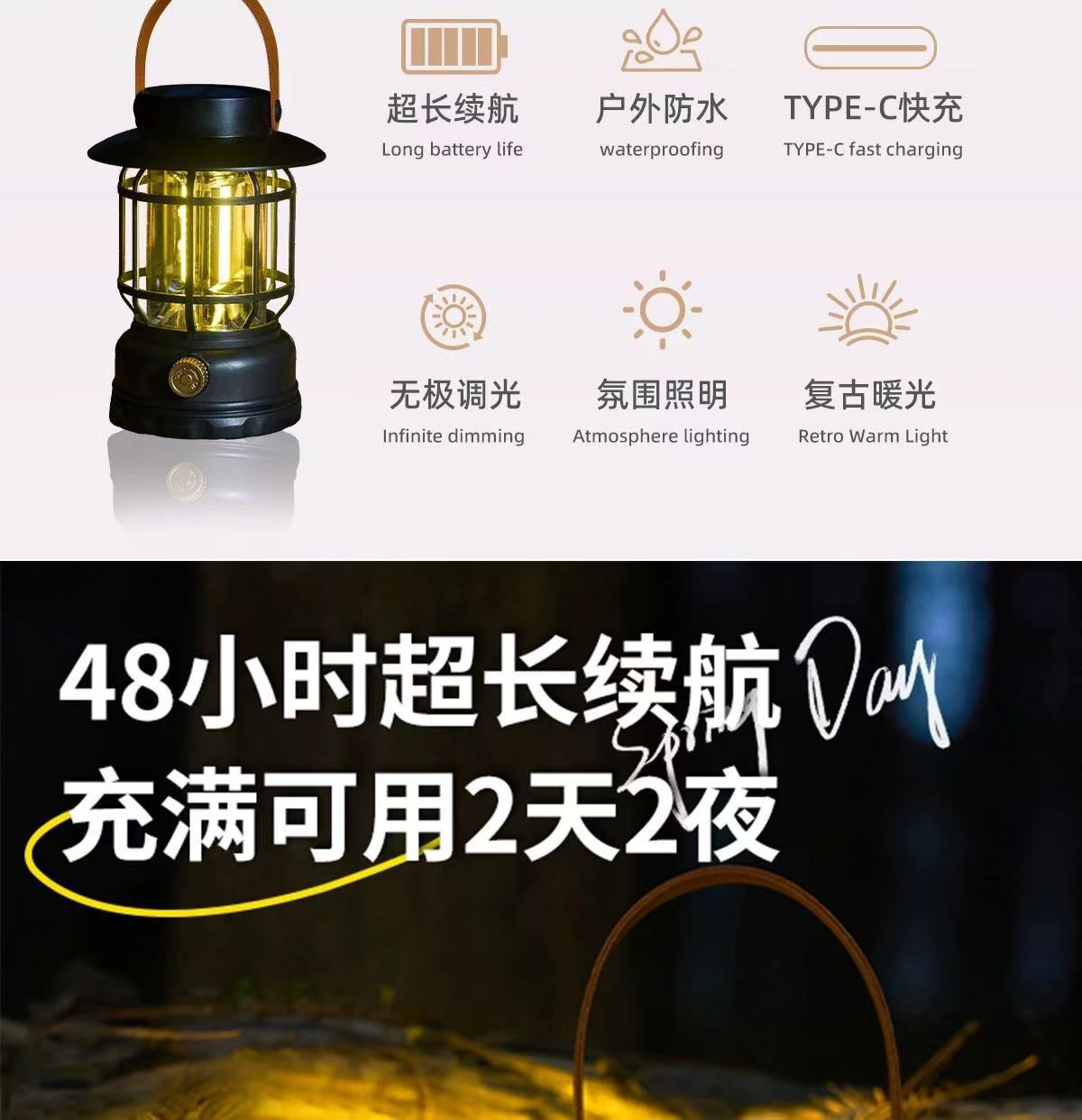 새로운 태양 캠핑 램프 야외 텐트 램프 분위기 긴 배터리 수명 복고풍 말 랜턴 조명 충전식 캠핑 램프
