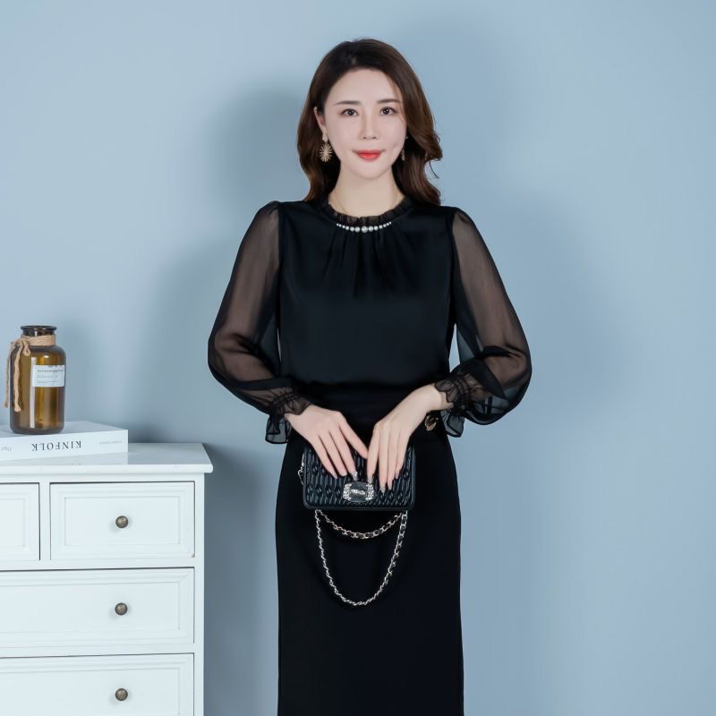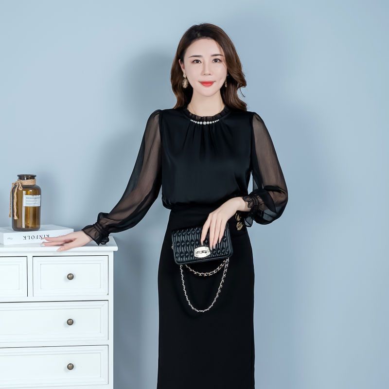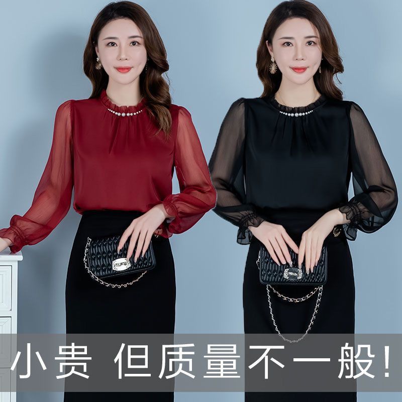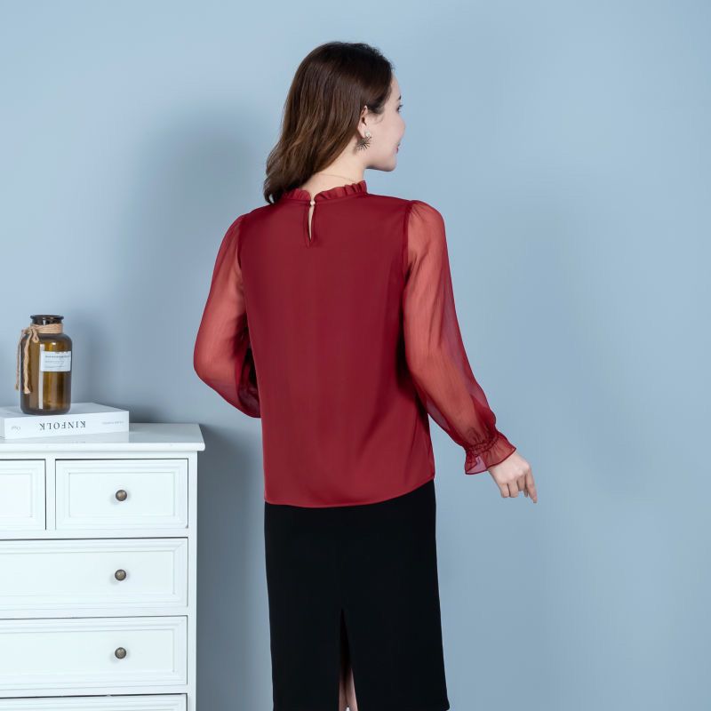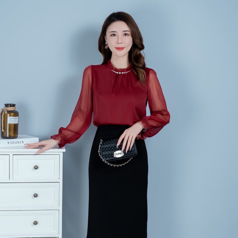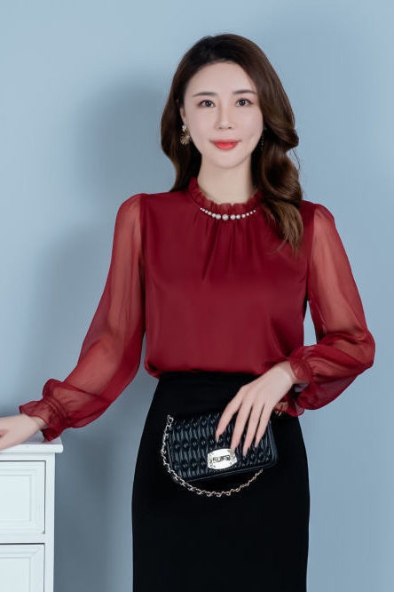 2025 가을 레드 탑, 여성용 다용도 긴팔 쉬폰 셔츠, 패셔너블한 탑, 우아한 셔츠스토어 가기