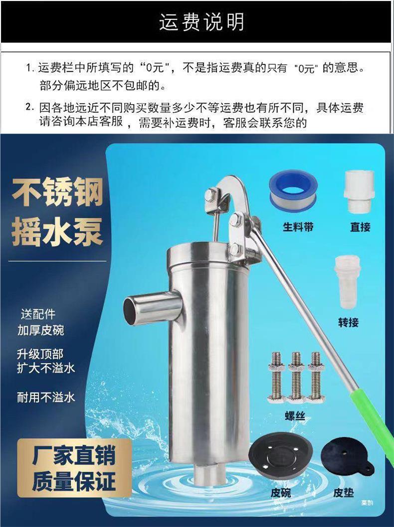스테인레스 스틸 표준 우물 펌프 가정용 수중 핸드 펌프 흡입 펌프 수압 우물 구식 우물 헤드스토어 가기