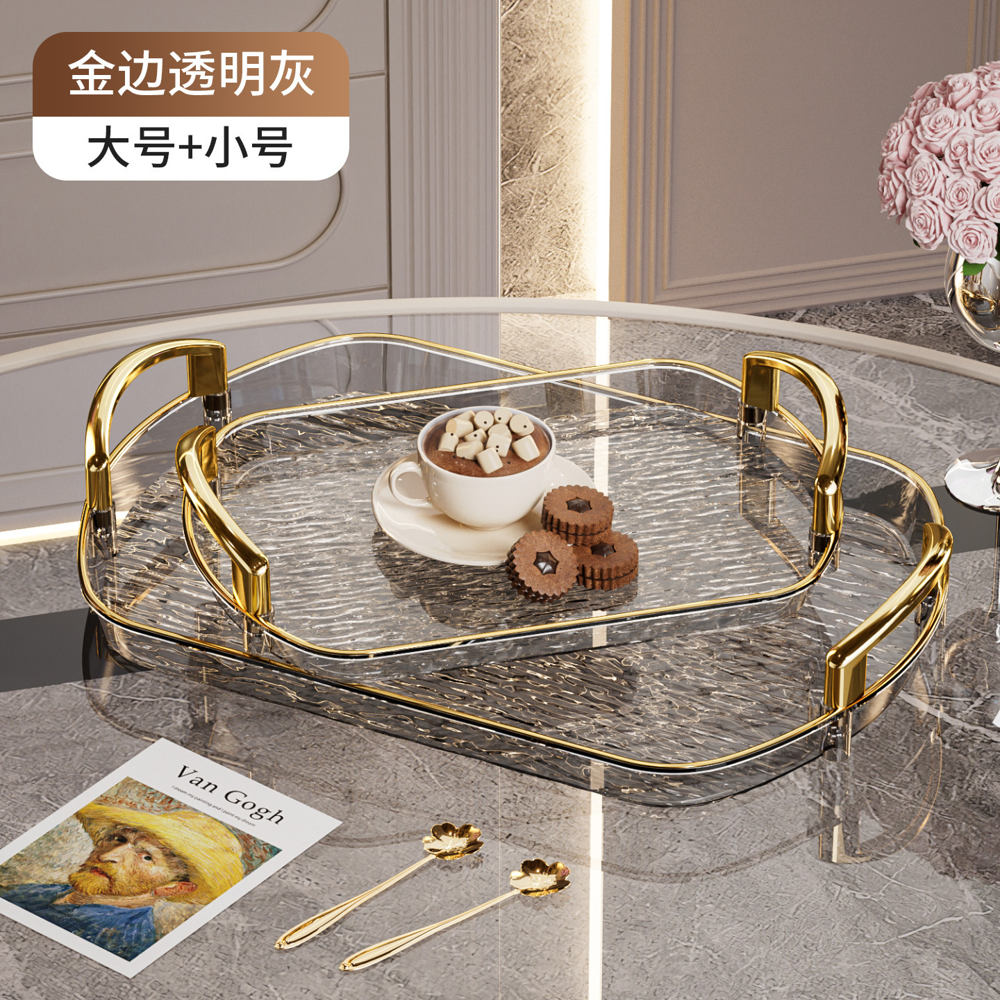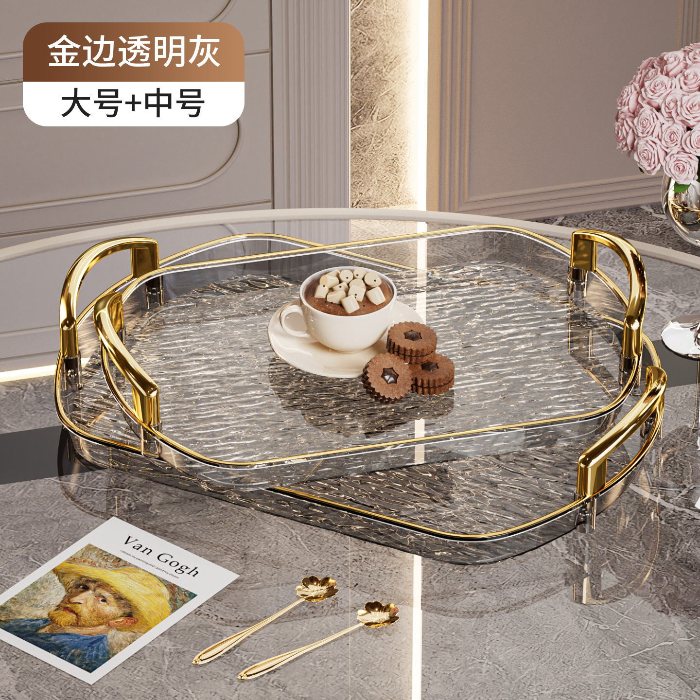 • 투명한 그레이 골드 엣지 [대형 + 소형]
