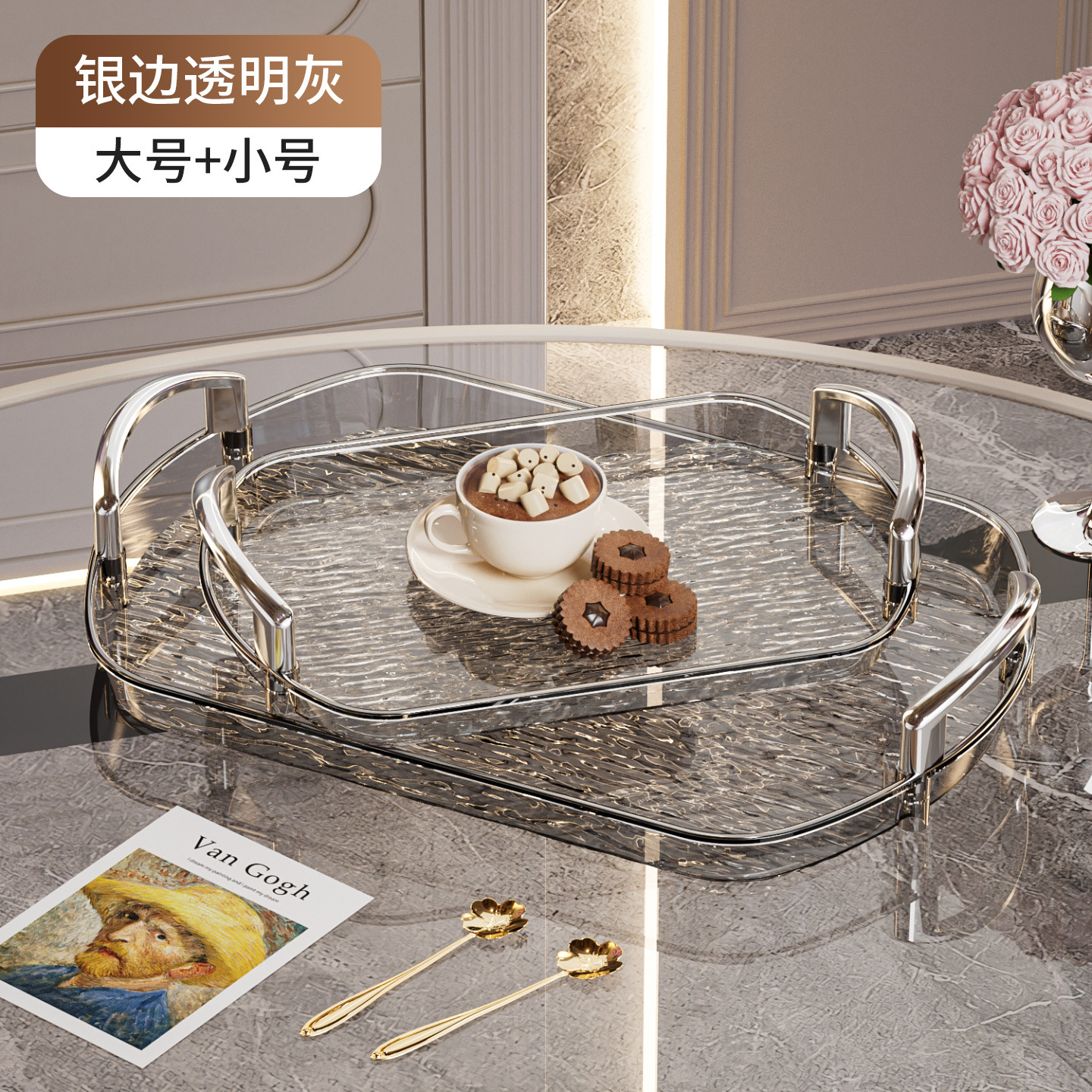 손잡이가 있는 가벼운 고급 플라스틱 트레이, 양쪽 귀가 있는 고급 가정용 차 트레이, 디너 트레이, 상업용 레스토랑 두꺼운 대형 트레이