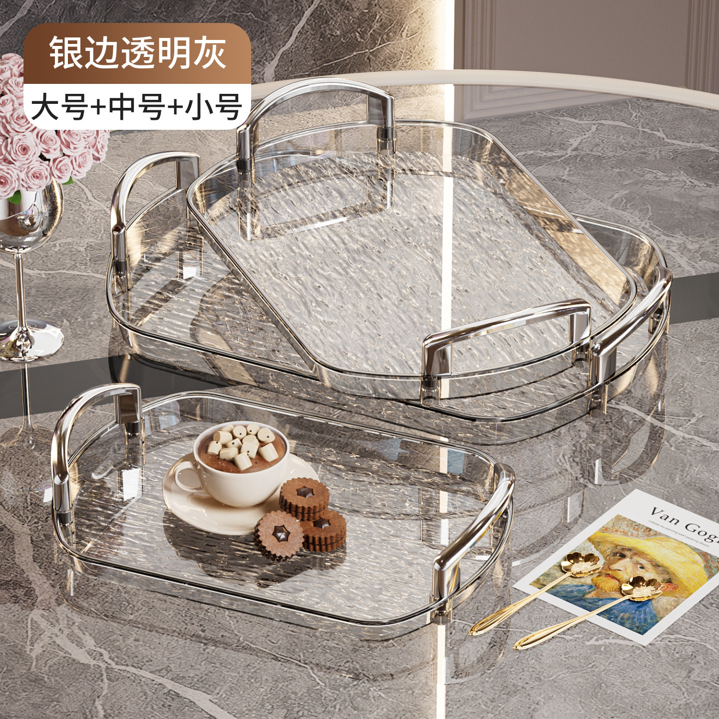 • 투명한 그레이-실버 엣지 [대형+중형+소형]
