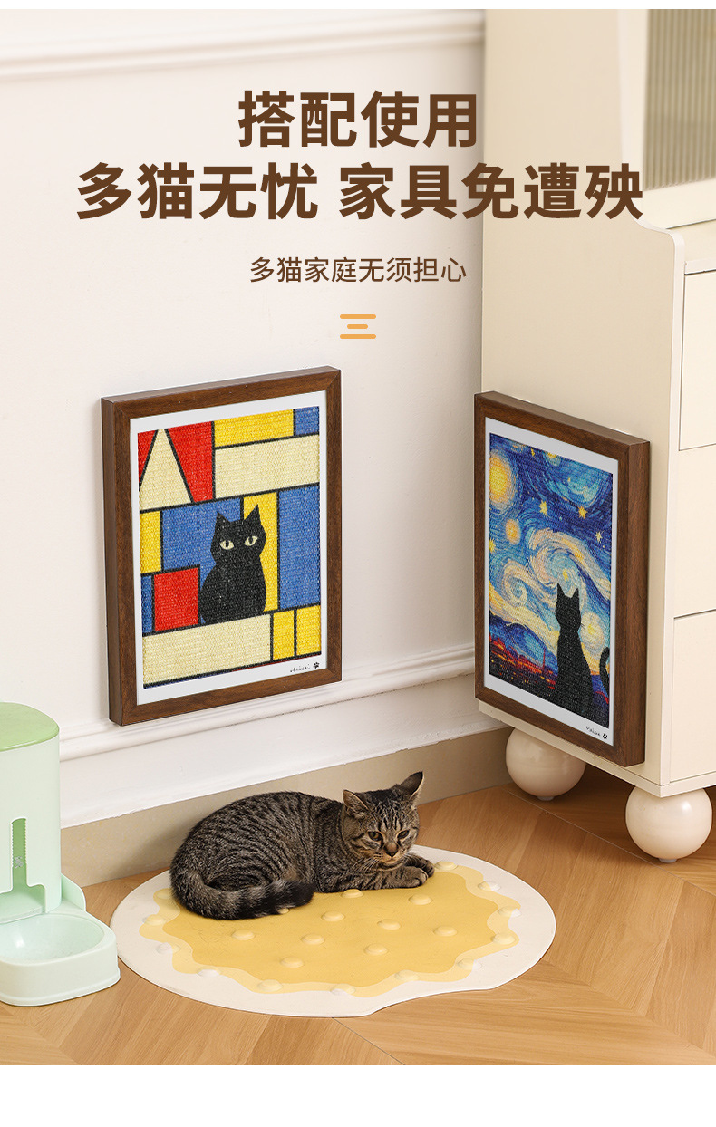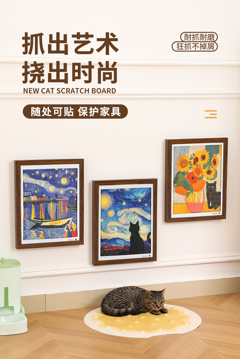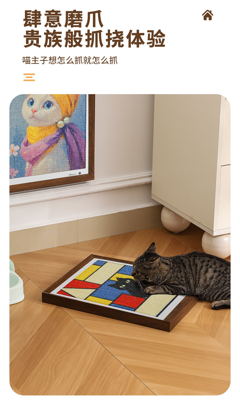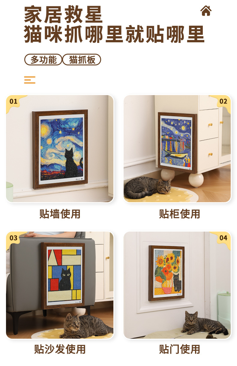 特点3:做成油画样式,图案丰富,使用的颜料也多为无毒环保型,对猫咪健康无危害,也符合环保理念,能作为装饰融入家居环境,兼具实用性与美观性产品规格:42*33*3.5cm