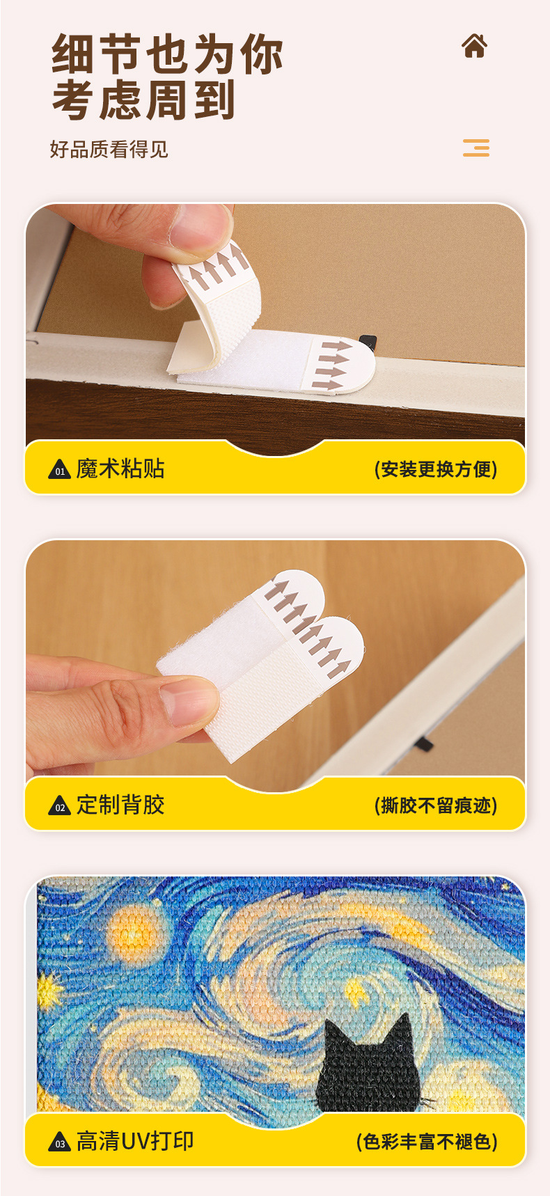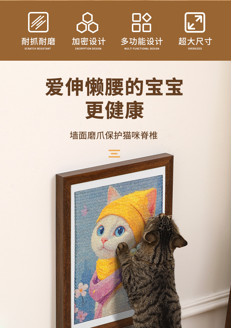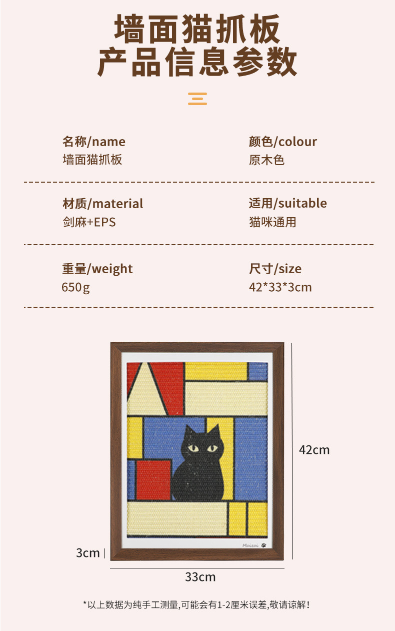 特点3:做成油画样式,图案丰富,使用的颜料也多为无毒环保型,对猫咪健康无危害,也符合环保理念,能作为装饰融入家居环境,兼具实用性与美观性产品规格:42*33*3.5cm