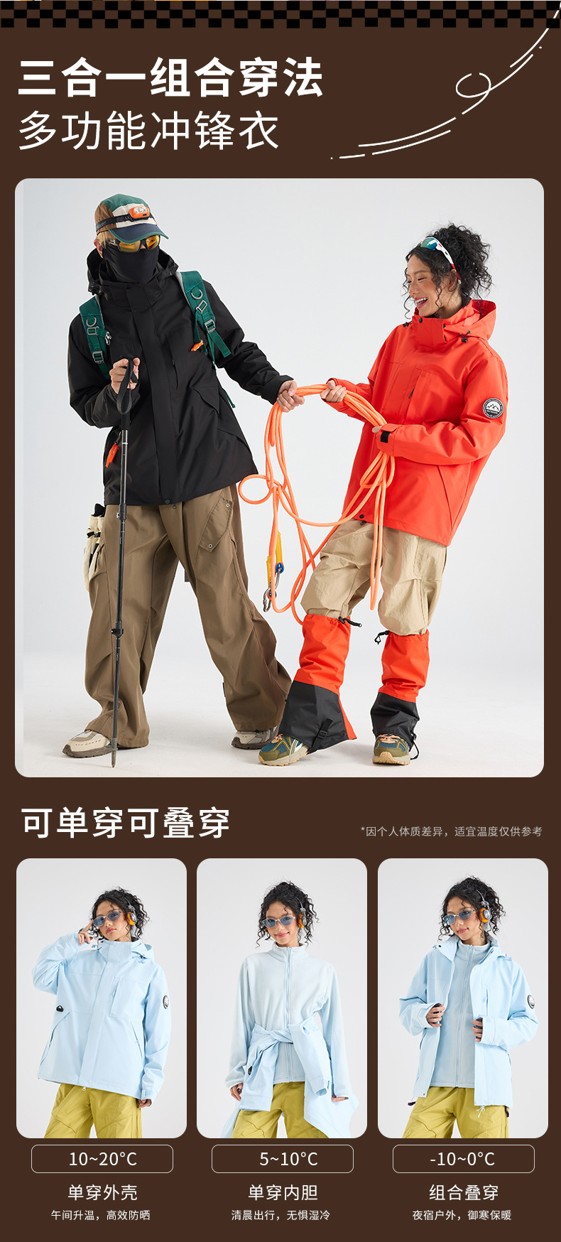 자켓 여성 새로운 가을, 겨울 야외 방풍 및 방수 3-in- 0.05kg 세트 남성 하이킹 및 등산 자켓 작업복스토어 가기