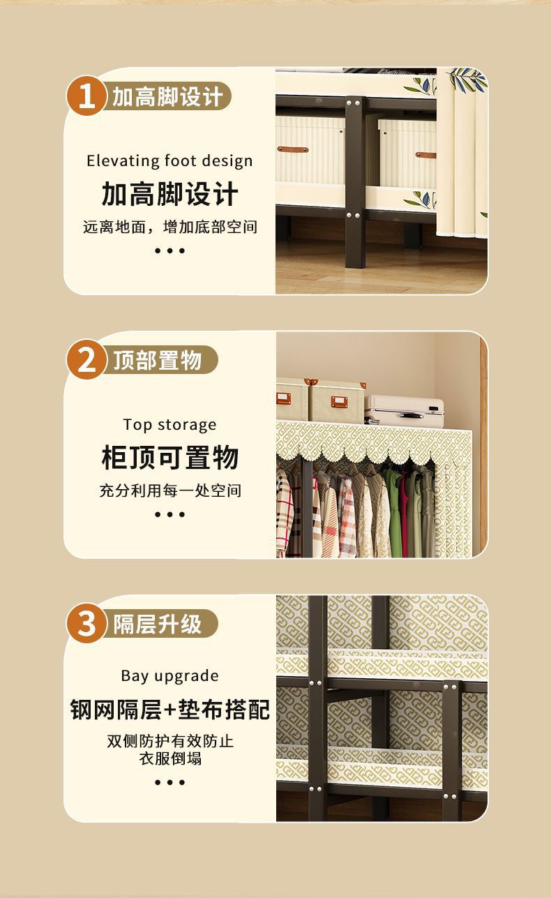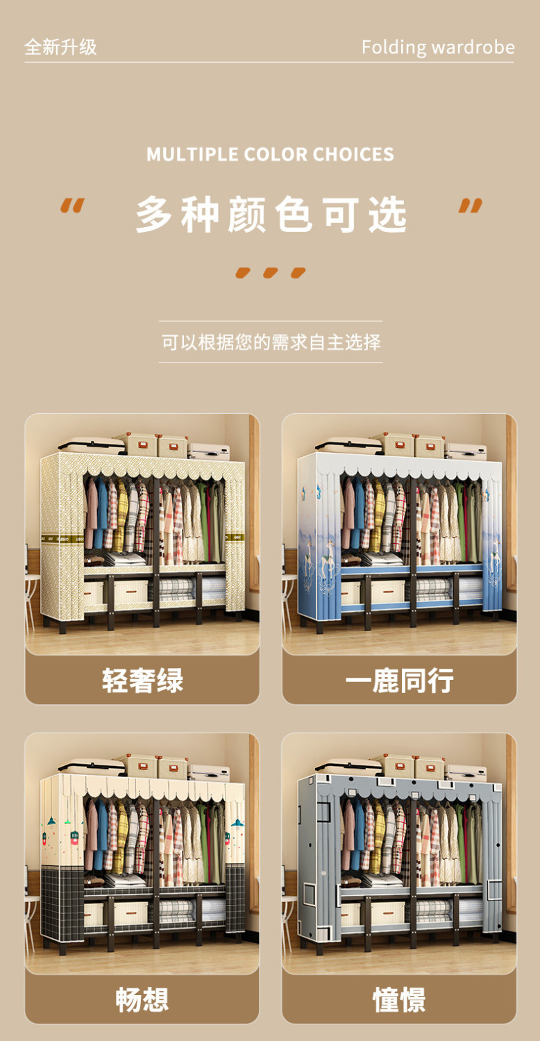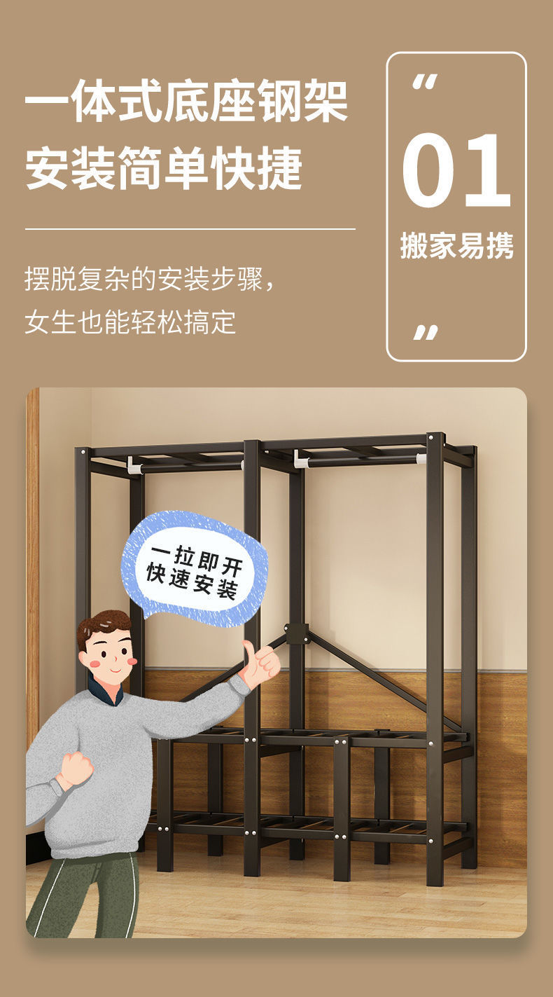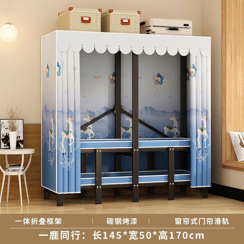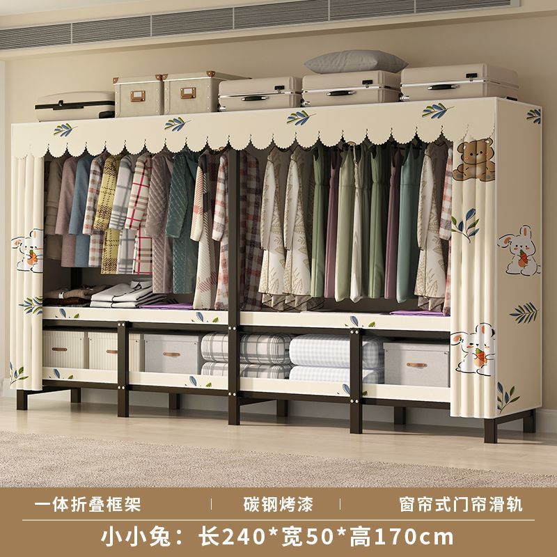 침실 가정용 천 옷장 강철 파이프 두껍고 강화된 접이식 옷장 임대 주택 간단한 옷장 작은 토끼 꿈스토어 가기