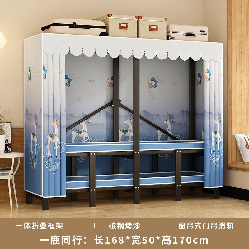 침실 가정용 천 옷장 강철 파이프 두껍고 강화된 접이식 옷장 임대 주택 간단한 옷장 작은 토끼 꿈