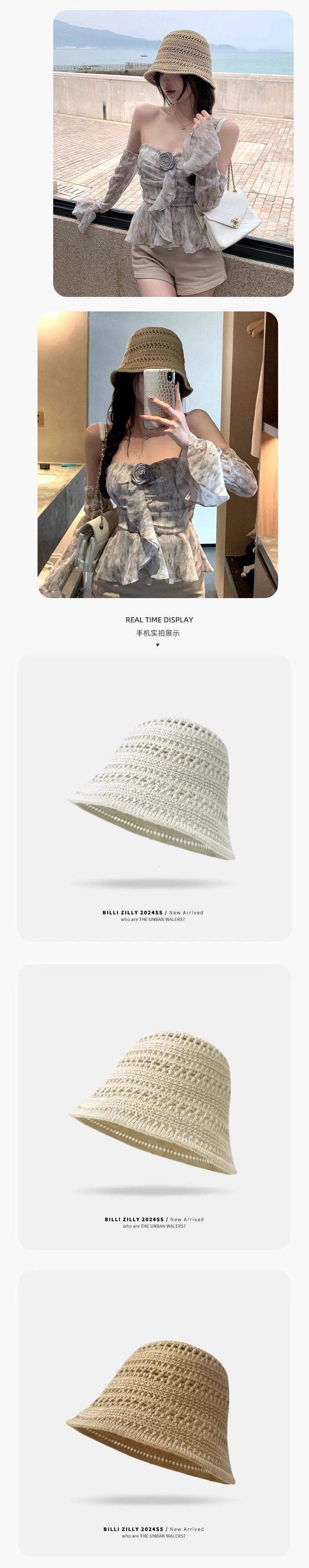 속이 빈 니트 어부 모자 여성의 새로운 일본 양동이 모자 문학 얇은 통기성 태양 보호 분지 모자