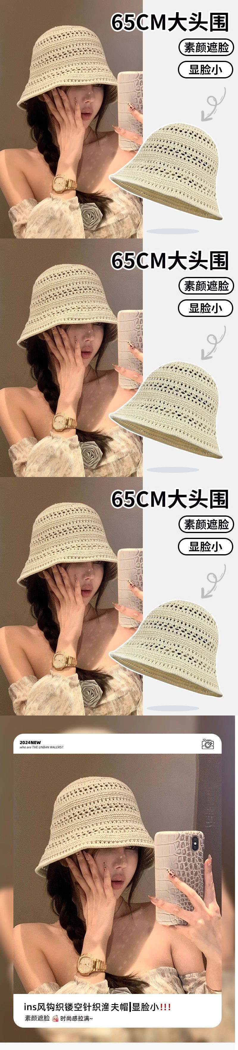 속이 빈 니트 어부 모자 여성의 새로운 일본 양동이 모자 문학 얇은 통기성 태양 보호 분지 모자스토어 가기