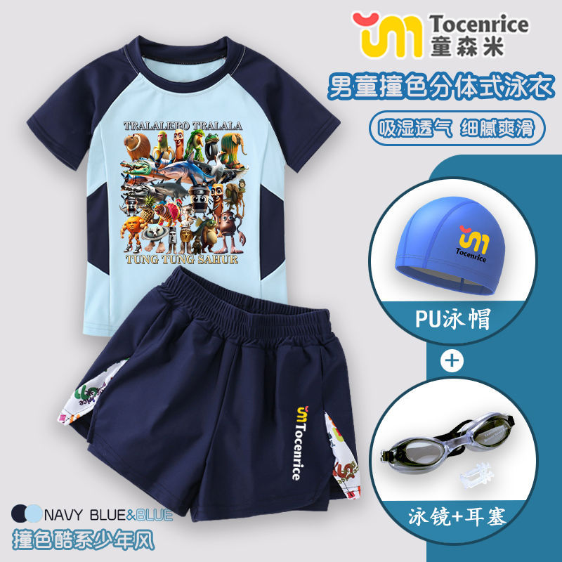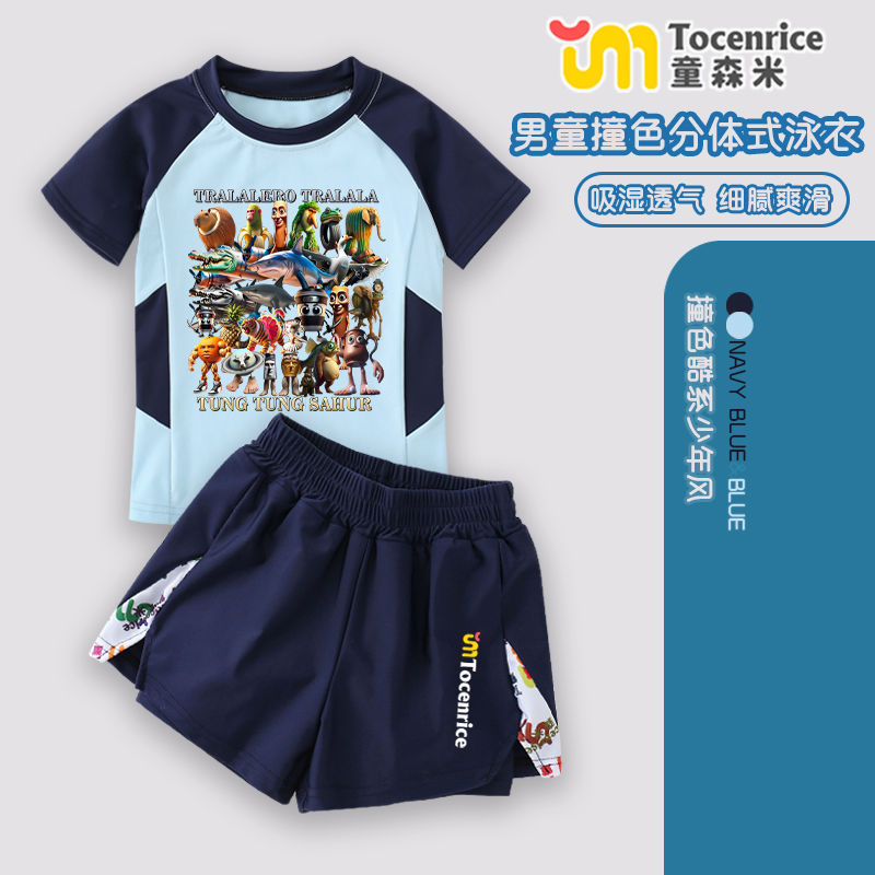 American Mountain and Sea Classics Tongtongge 나무 막대기 어린이 의류 유행 브랜드 주변 어린이 수영복 스플릿 소년 수영복 세트 7