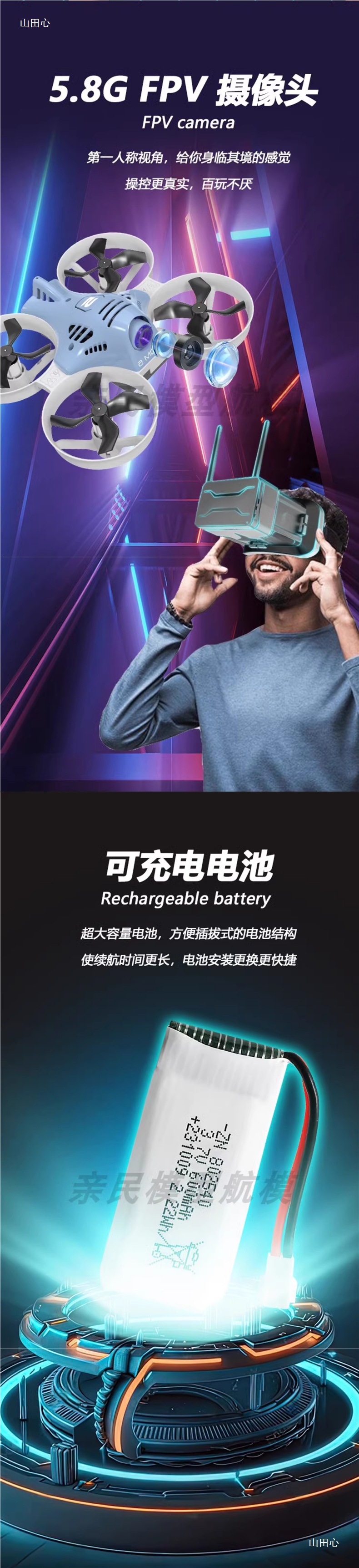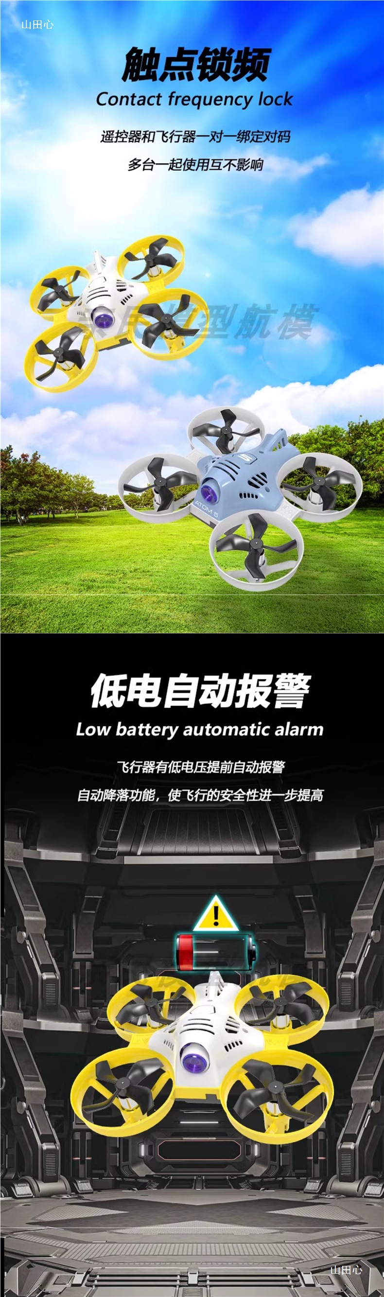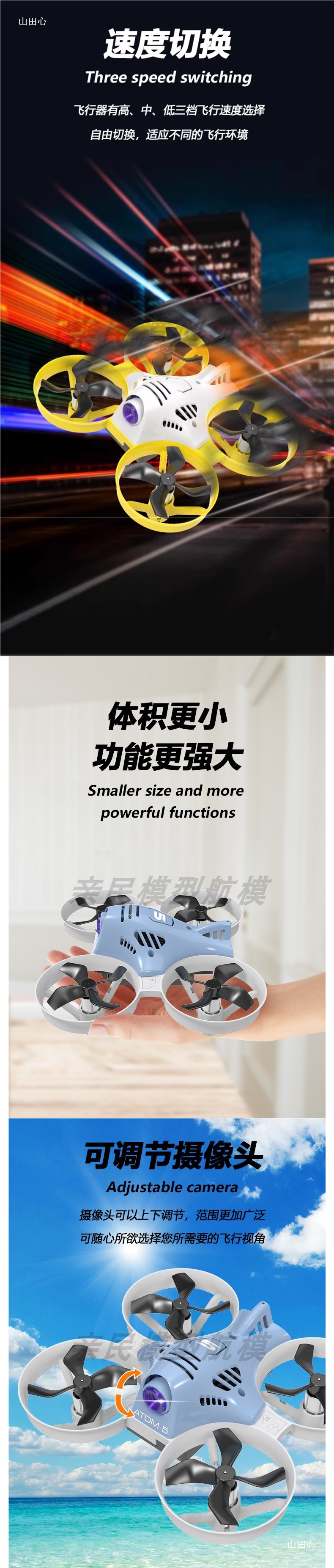 • 5.8G 아날로그 이미지 전송, 노란색과 흰색 색상 구성, 즉시 비행 가능