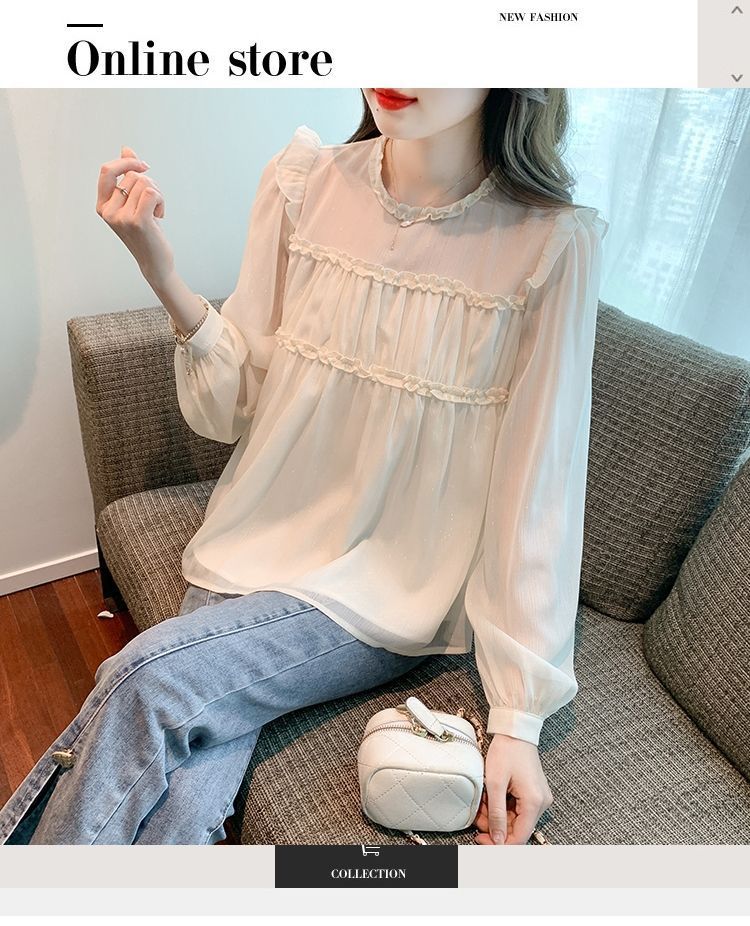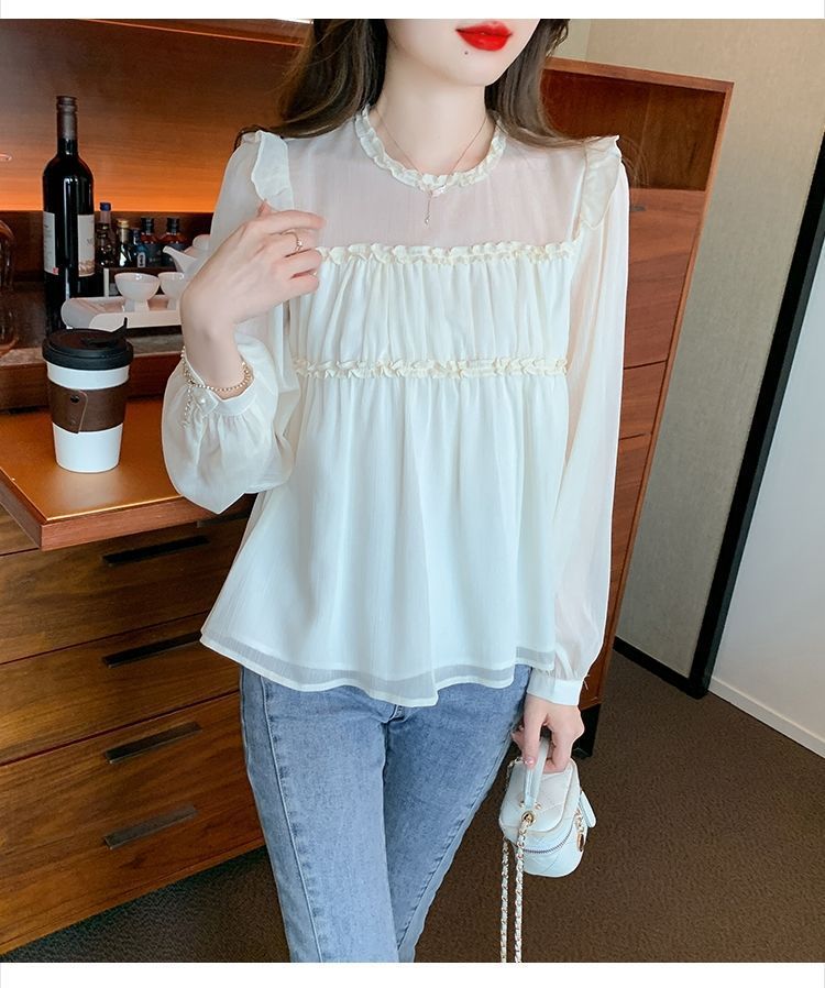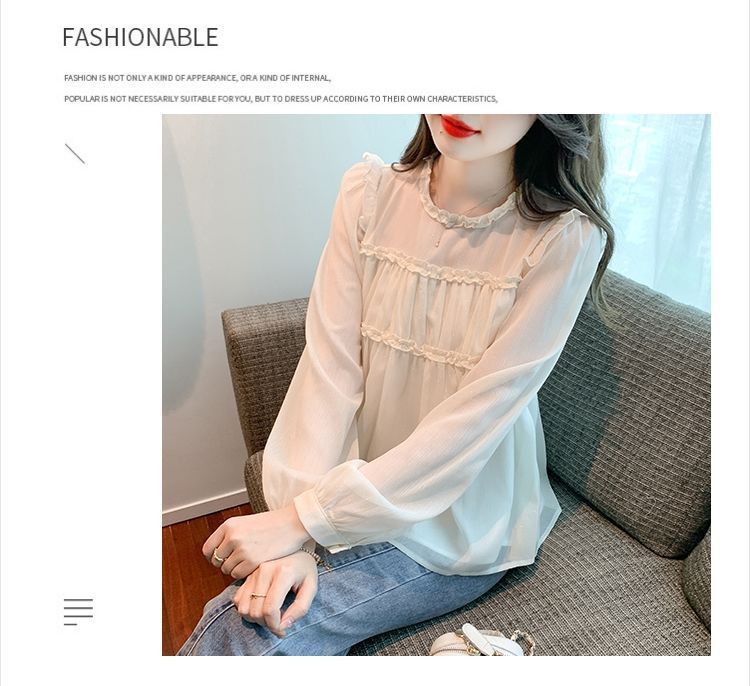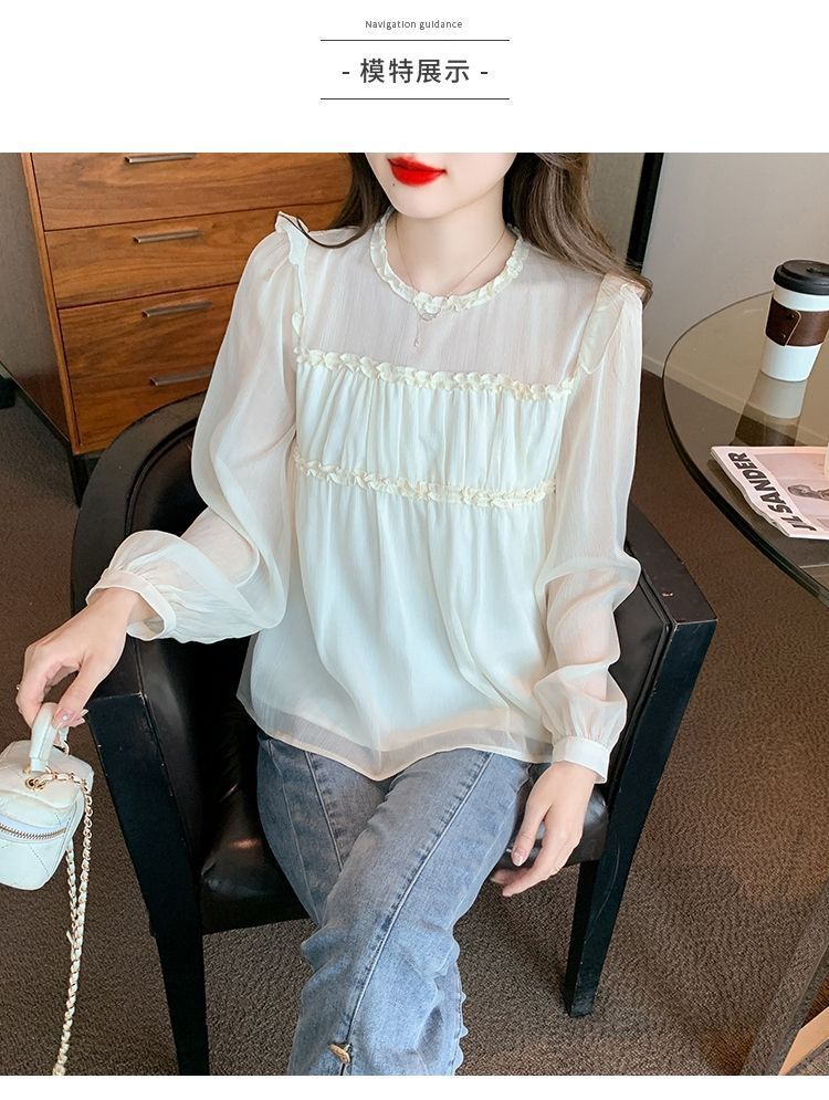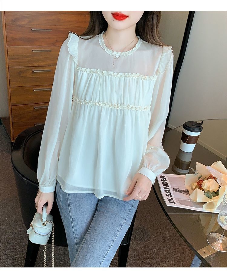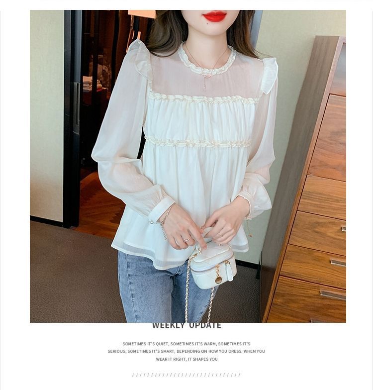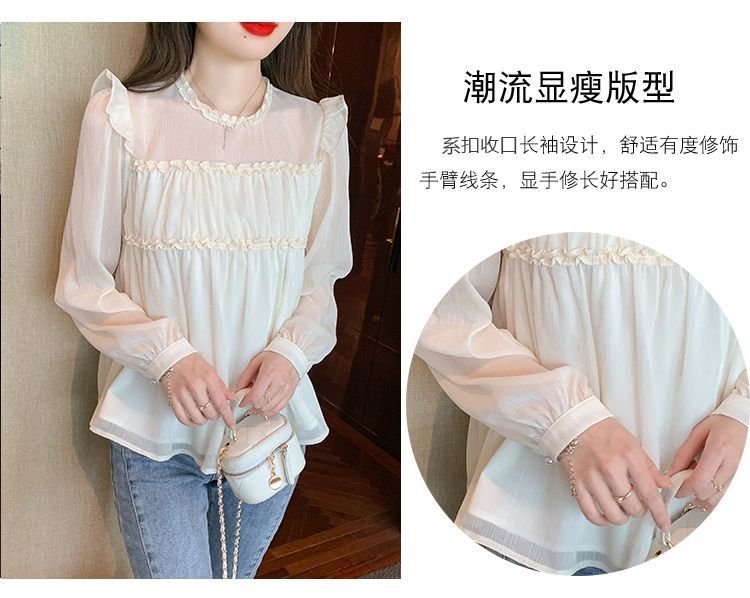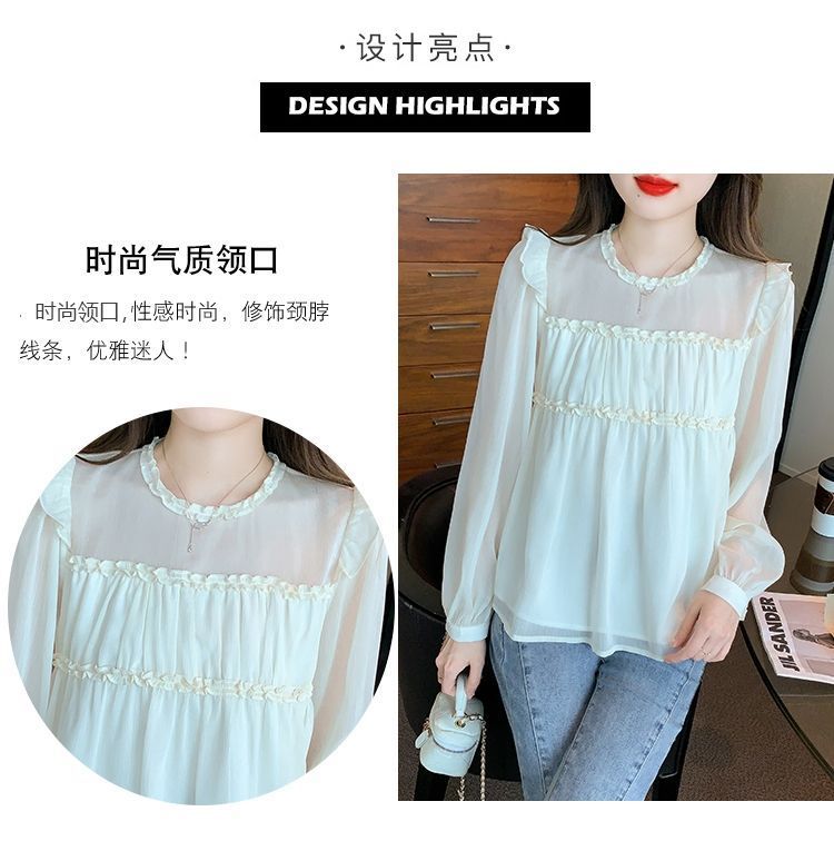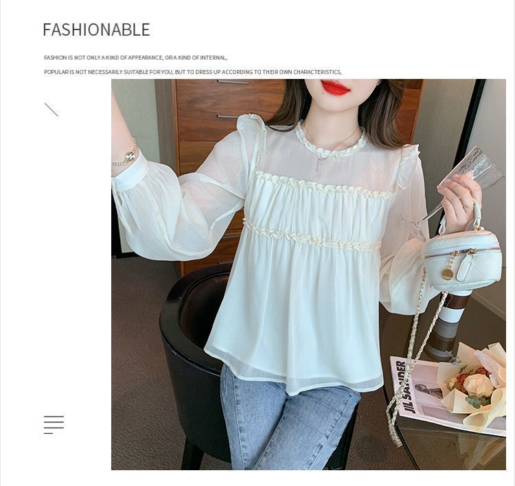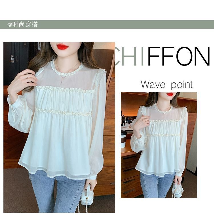 여성을위한 프렌치 라운드 넥 긴팔 쉬폰 셔츠 가을 2025 새로운 스타일의 다재다능한 여성 탑