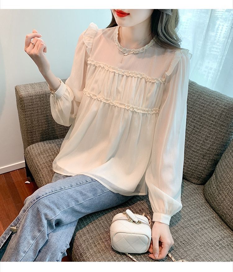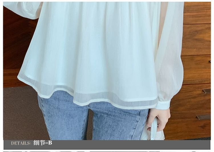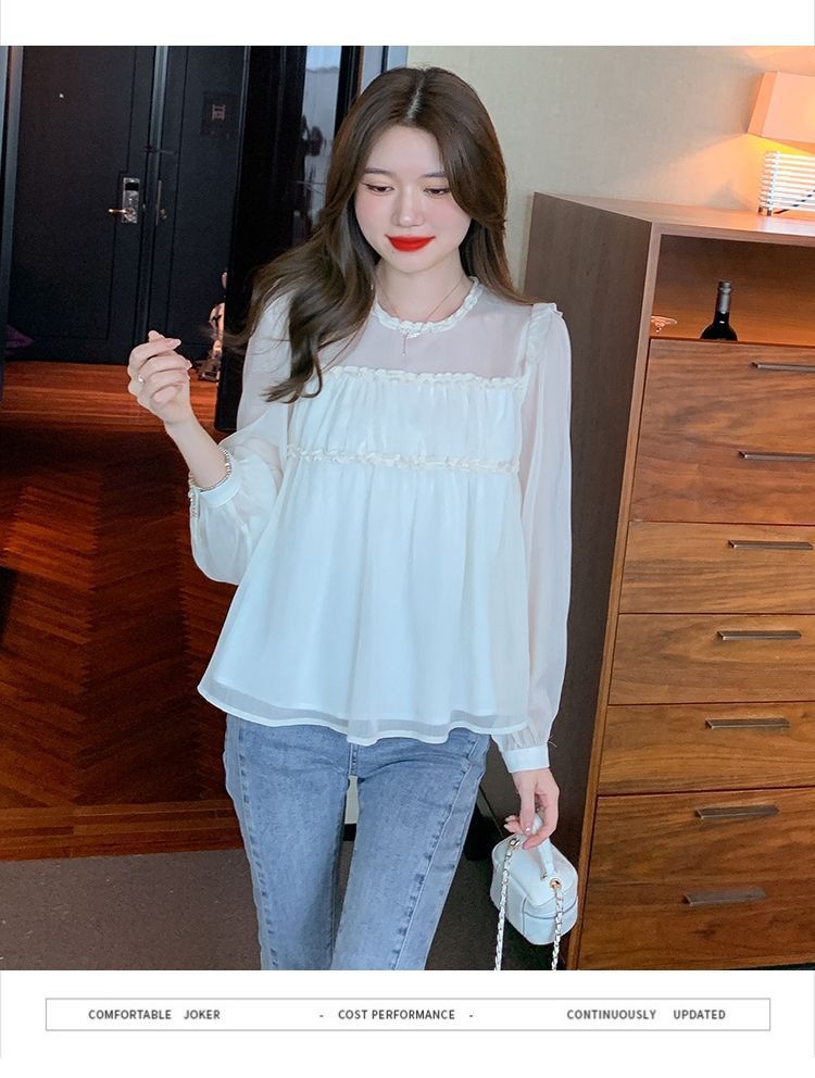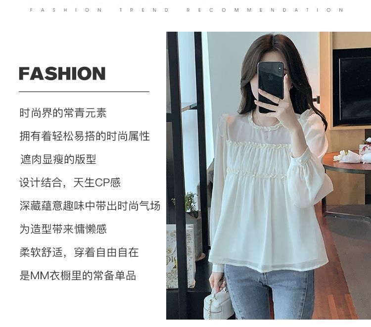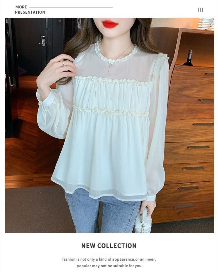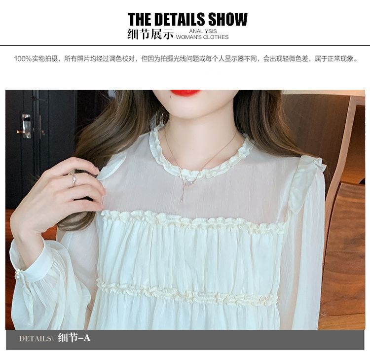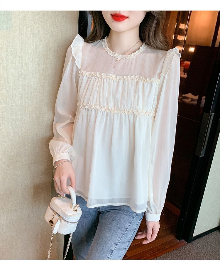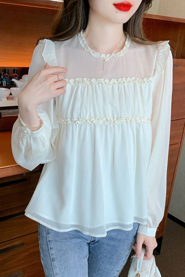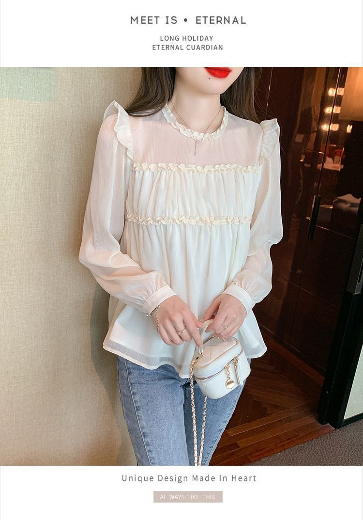 여성을위한 프렌치 라운드 넥 긴팔 쉬폰 셔츠 가을 2025 새로운 스타일의 다재다능한 여성 탑