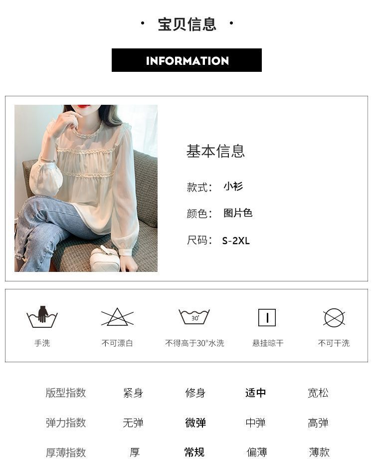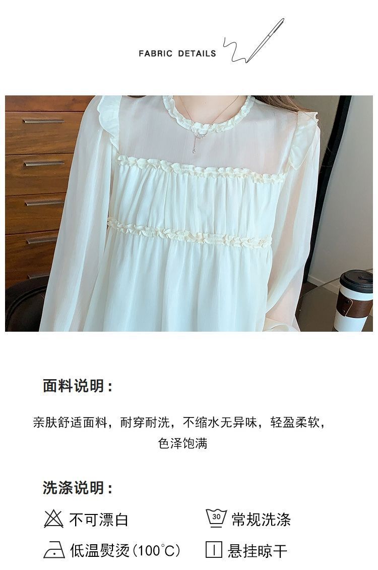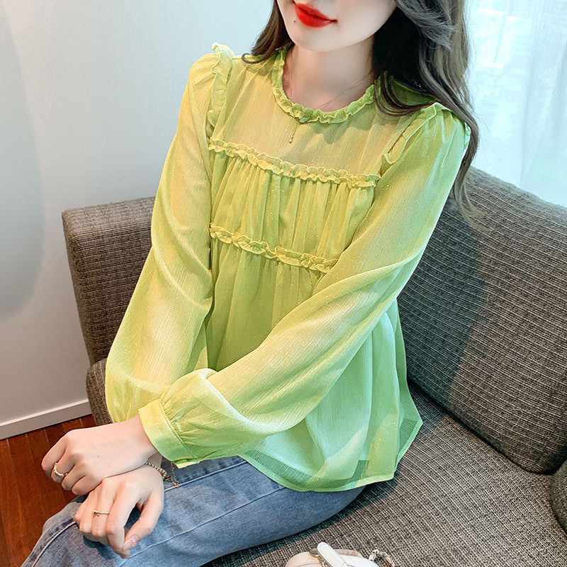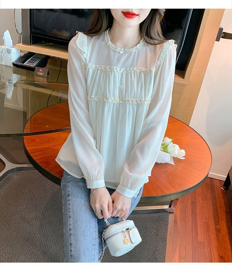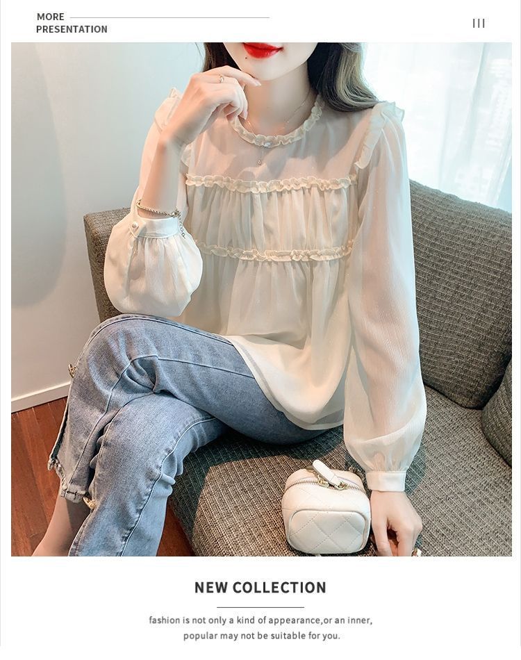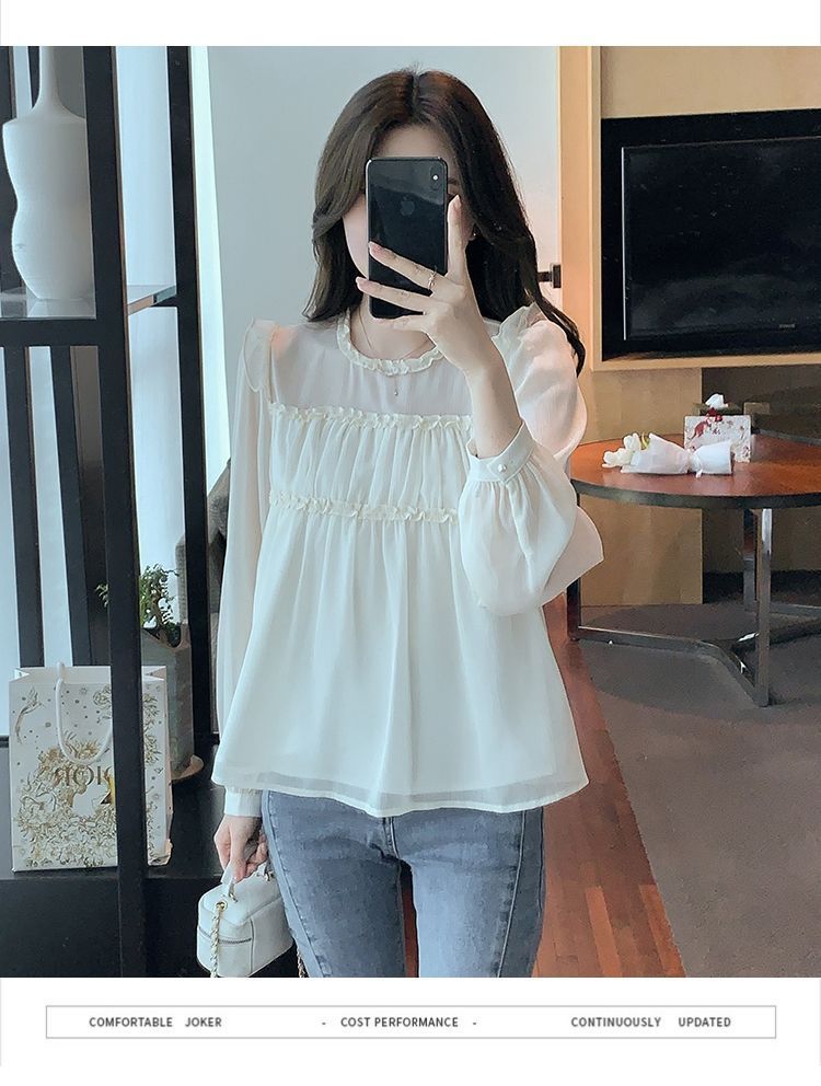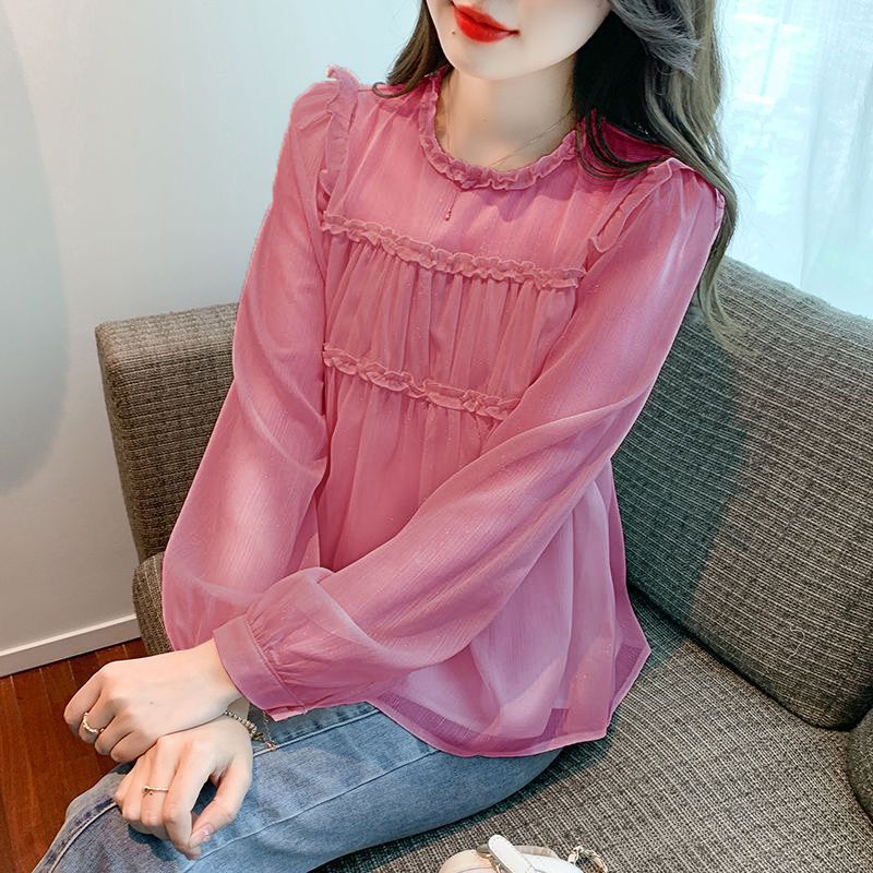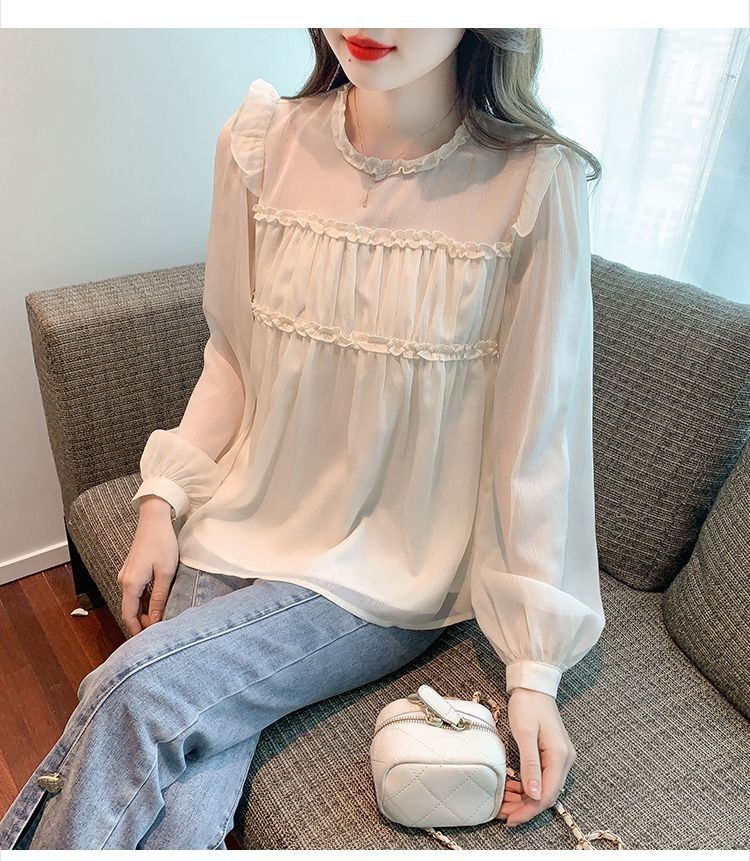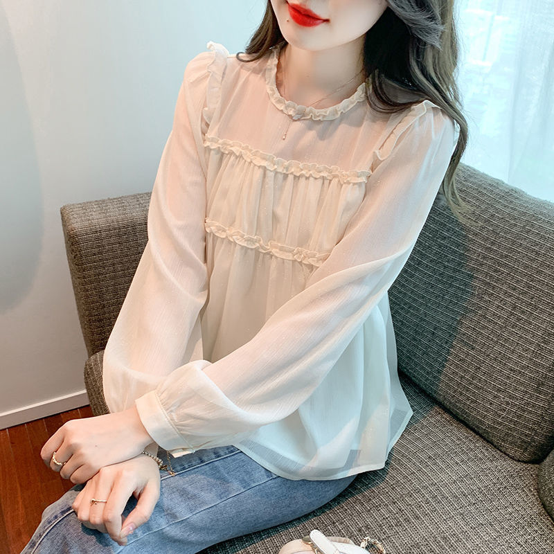 여성을위한 프렌치 라운드 넥 긴팔 쉬폰 셔츠 가을 2025 새로운 스타일의 다재다능한 여성 탑