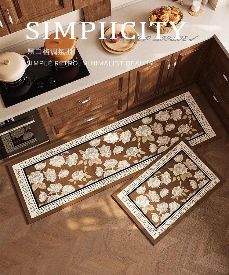 국경 간 가벼운 럭셔리 스타일 꽃무늬 규조토 진흙 주방 2피스 바닥 매트, 흡수성, 속건성, 미끄럼 방지, 가정용 카펫, 청소가 용이함스토어 가기