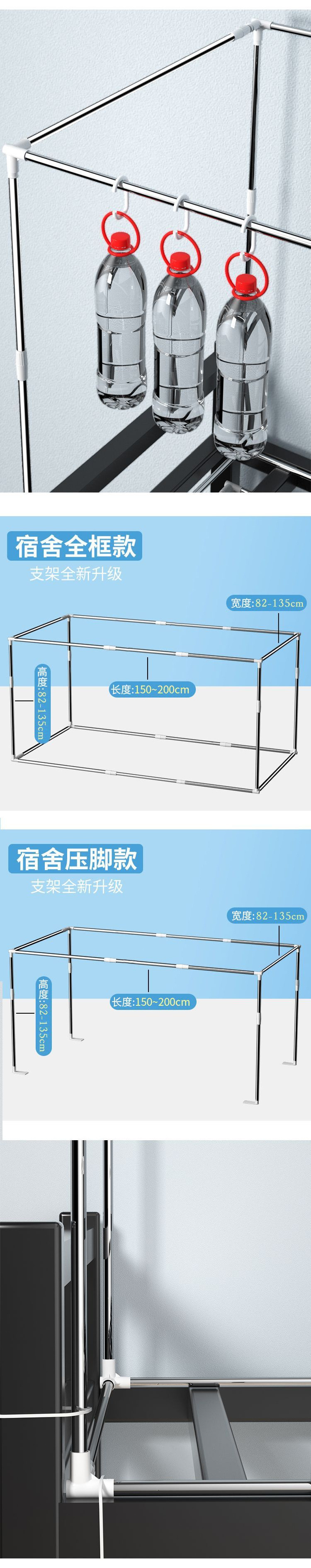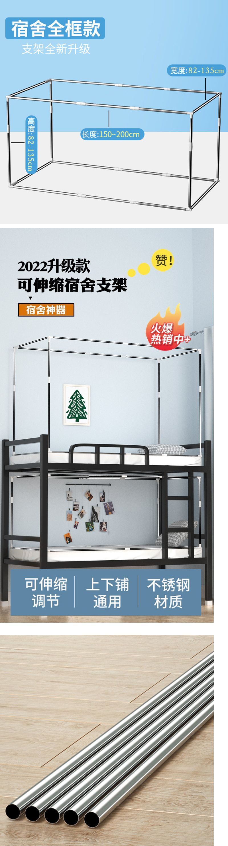 신축성 있는 스테인레스 스틸 선반 대학생 기숙사 침대 커튼 상단 레벨 브래킷 기숙사 모기장 지지대 두꺼워지고 두꺼워짐스토어 가기