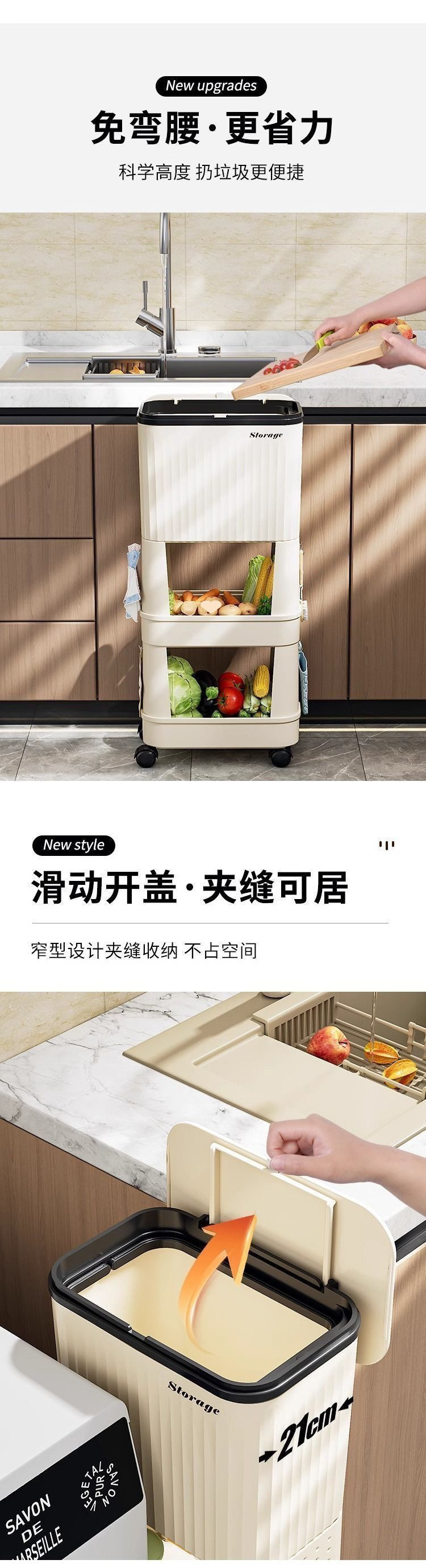 뚜껑과 바퀴가 달린 다기능 주방 쓰레기통, 거실 및 욕실용 대용량 쓰레기통스토어 가기