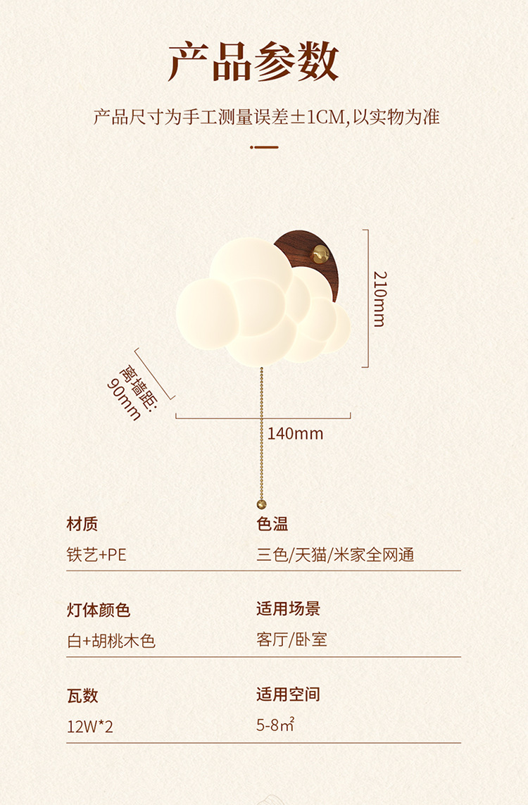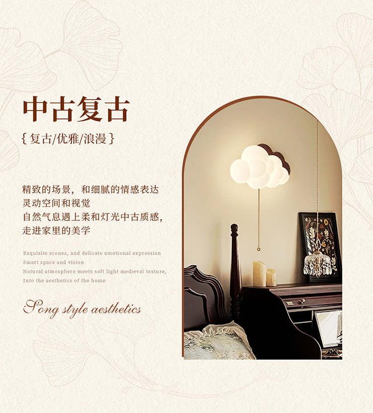 중세 스타일 호두 나뭇결 복고풍 구름 라인 머리맡 벽 램프 프랑스 크림 거실 침실 배경 벽 램프