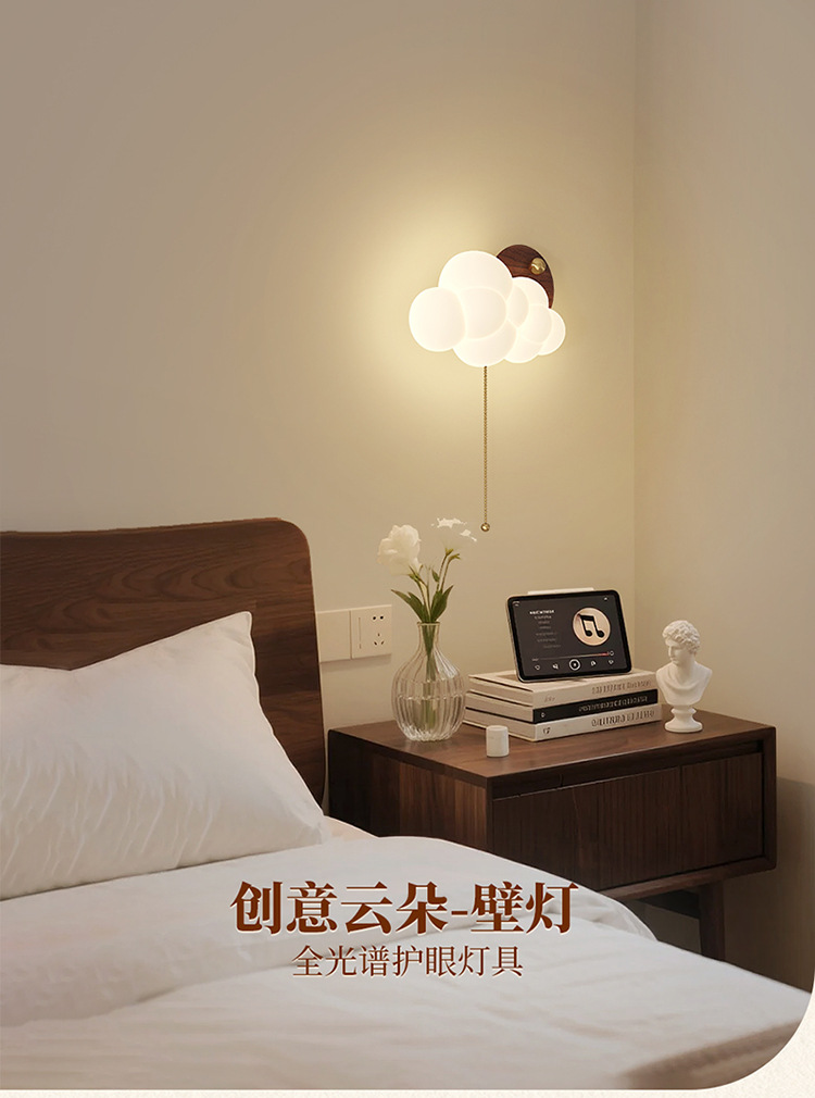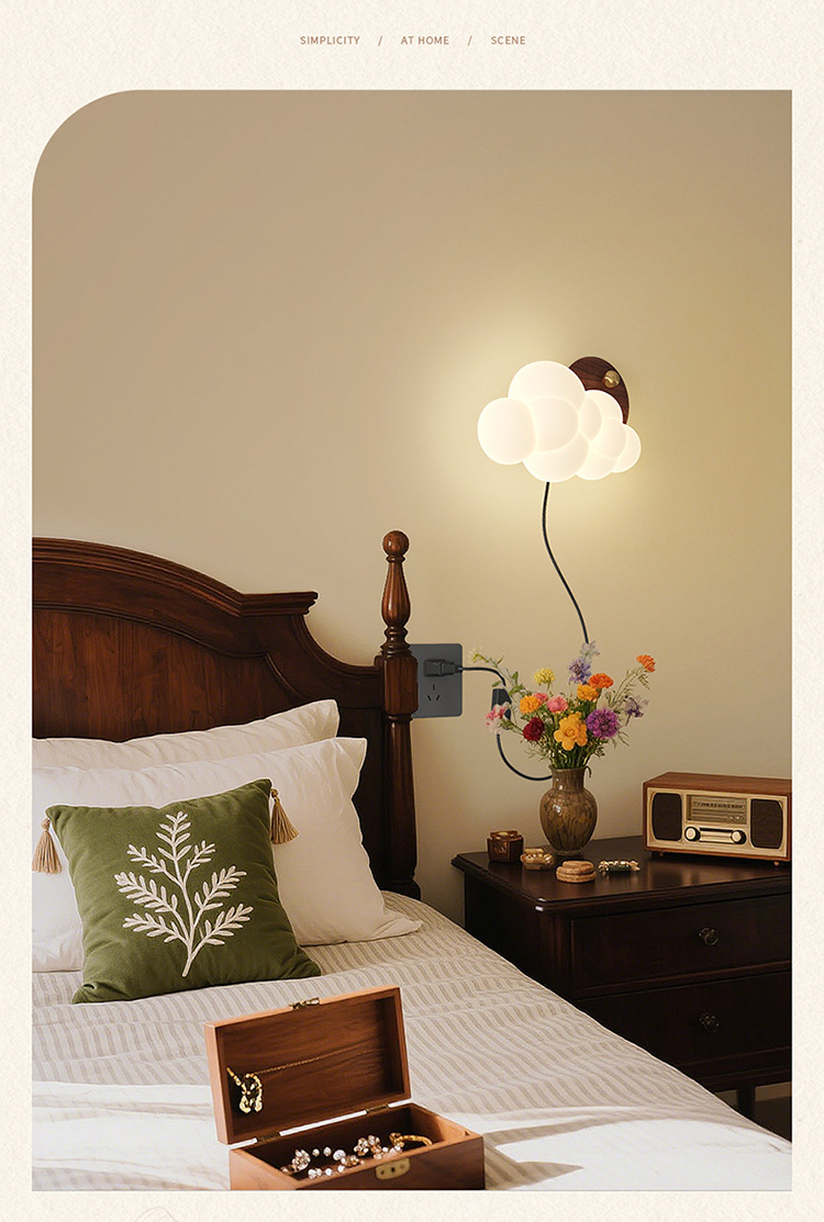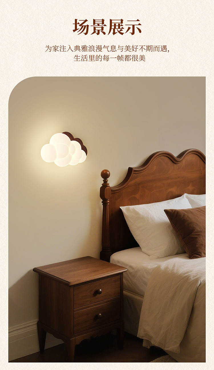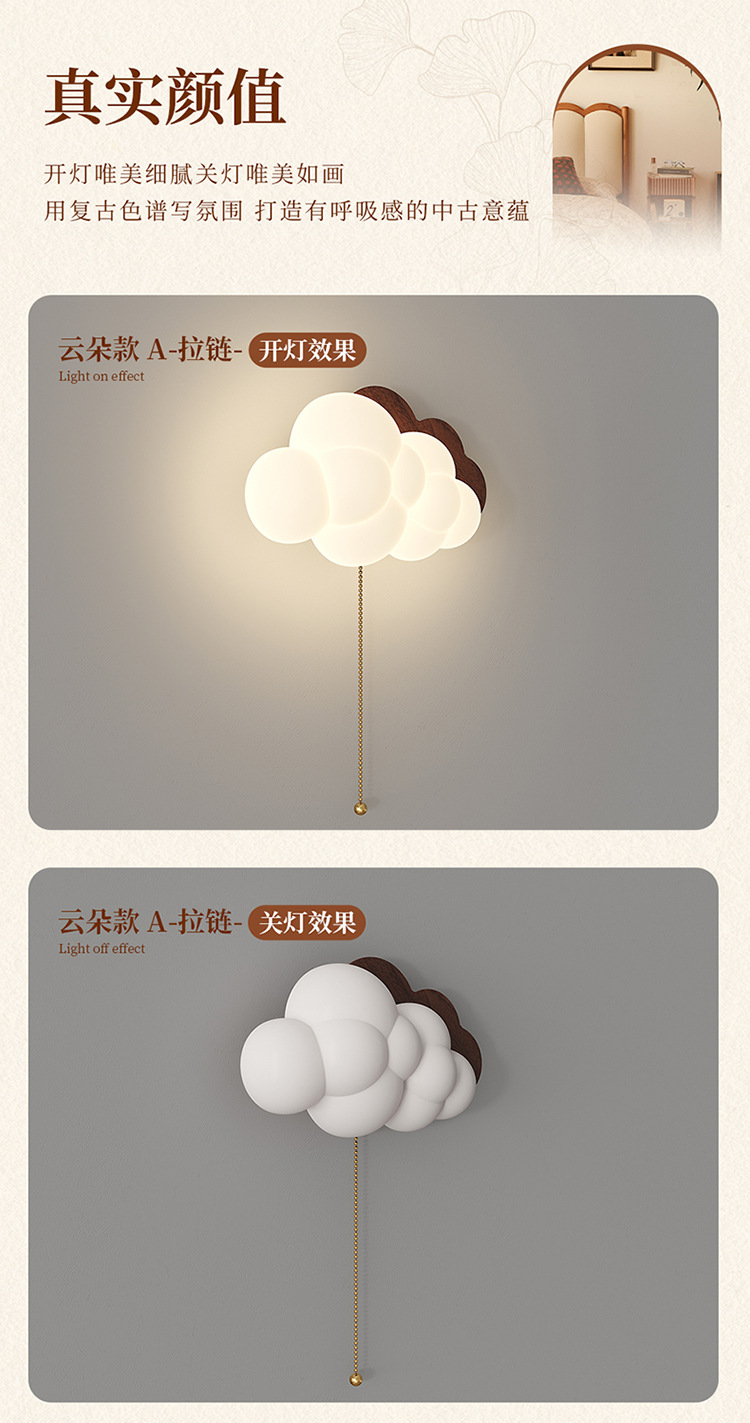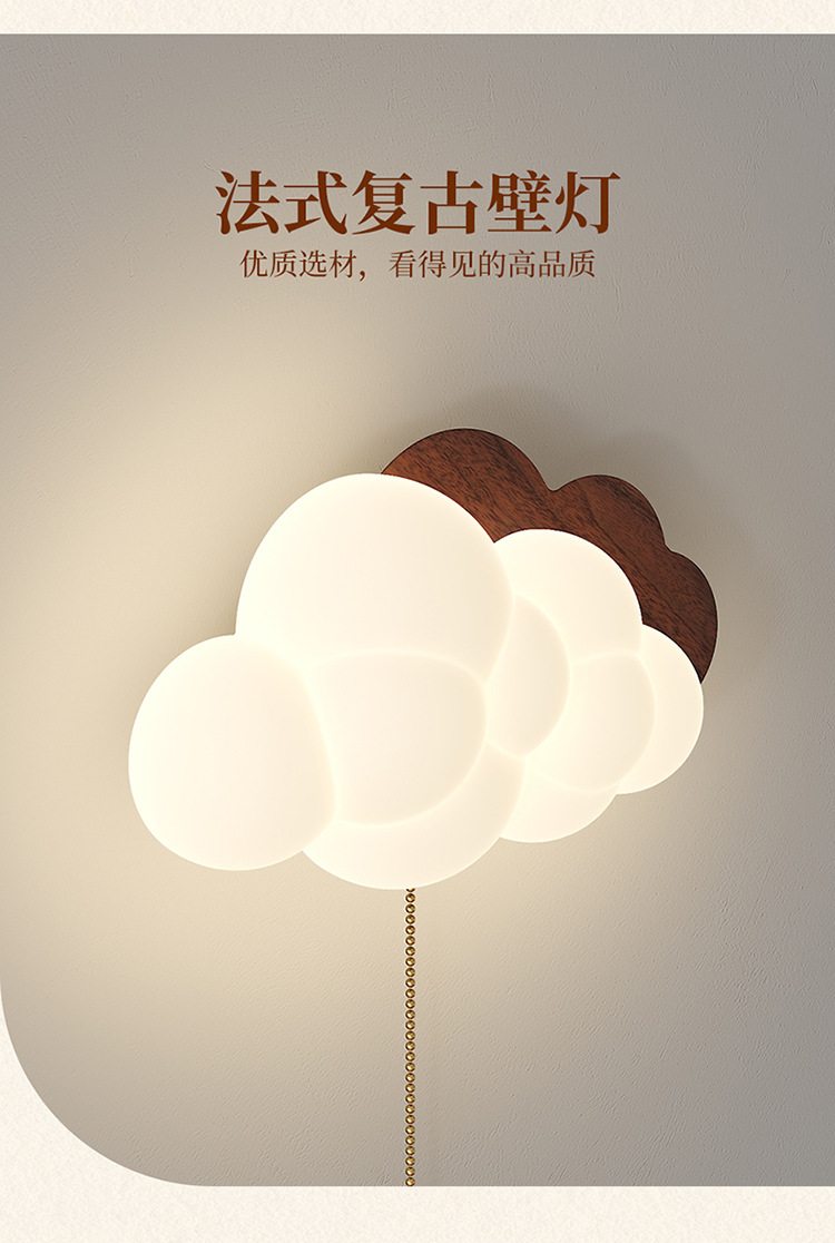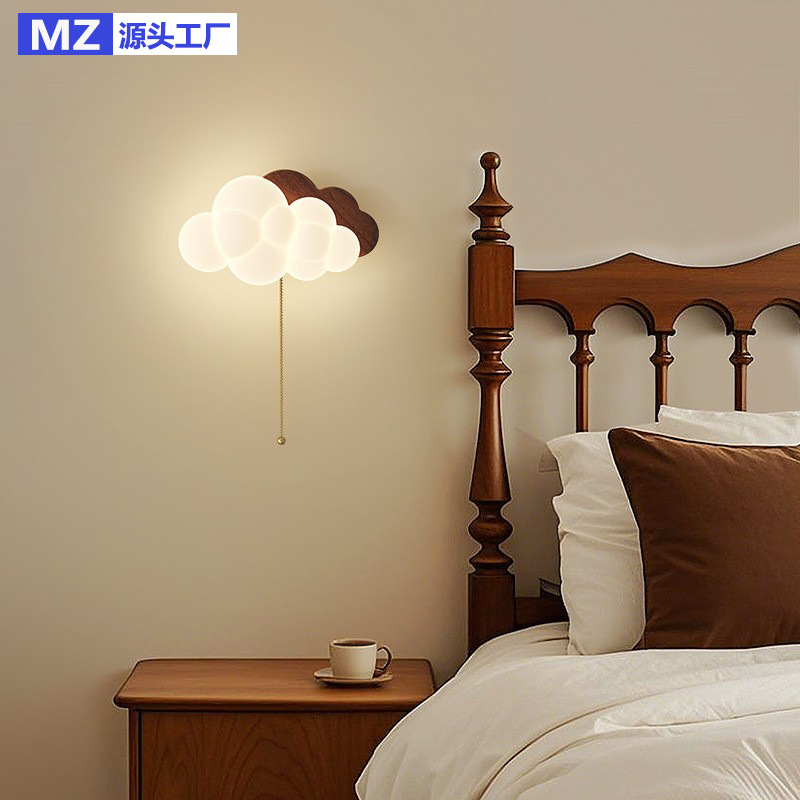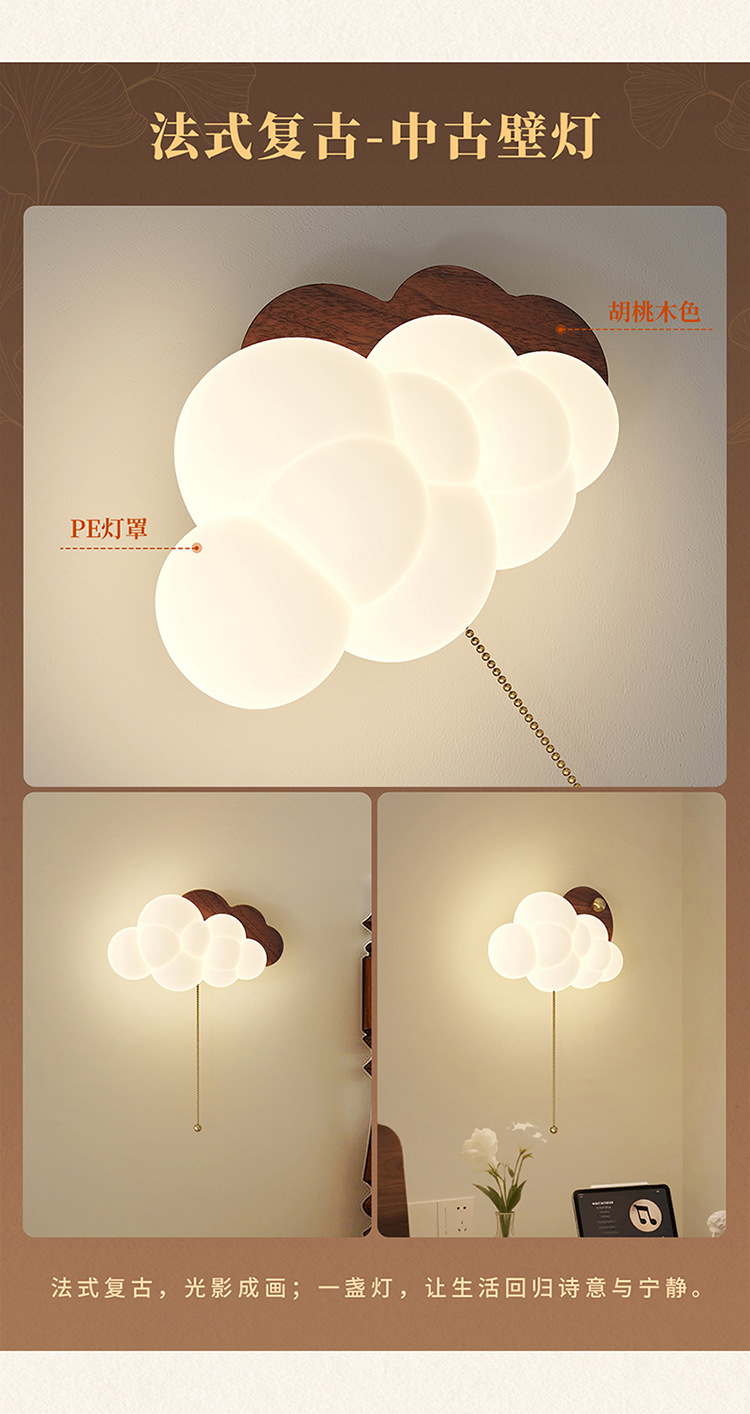 중세 스타일 호두 나뭇결 복고풍 구름 라인 머리맡 벽 램프 프랑스 크림 거실 침실 배경 벽 램프스토어 가기