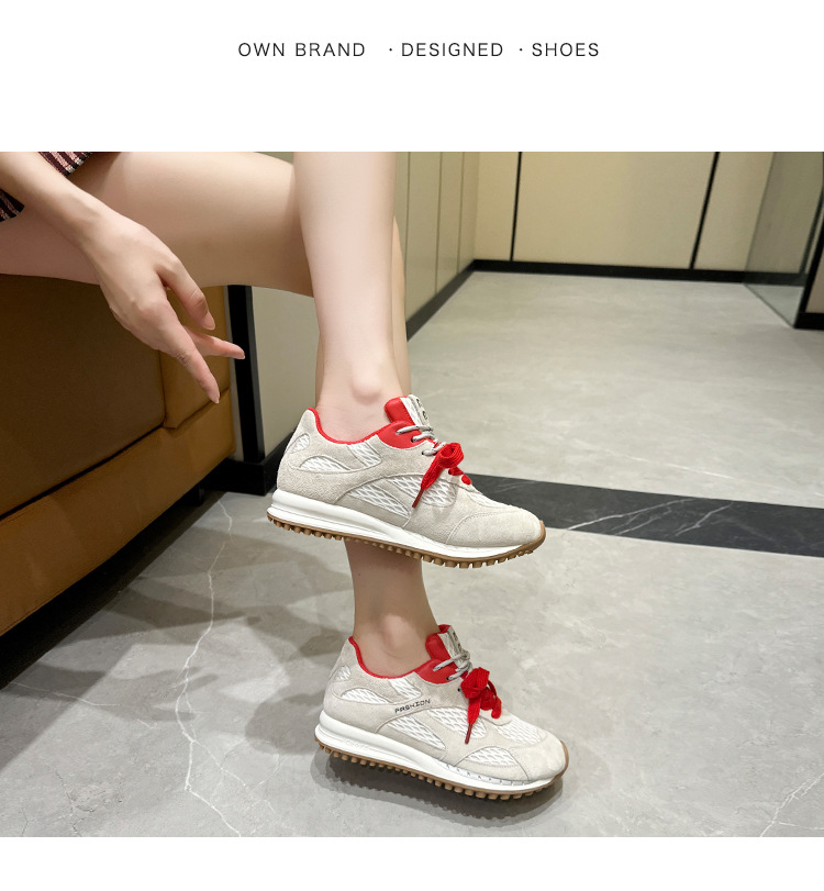 여성용 메쉬 포레스트 검프 신발 2025 여름 새로운 스타일 다목적 경량 통기성 두꺼운 밑창 높이 증가 스포츠 및 레저 육군 훈련 신발