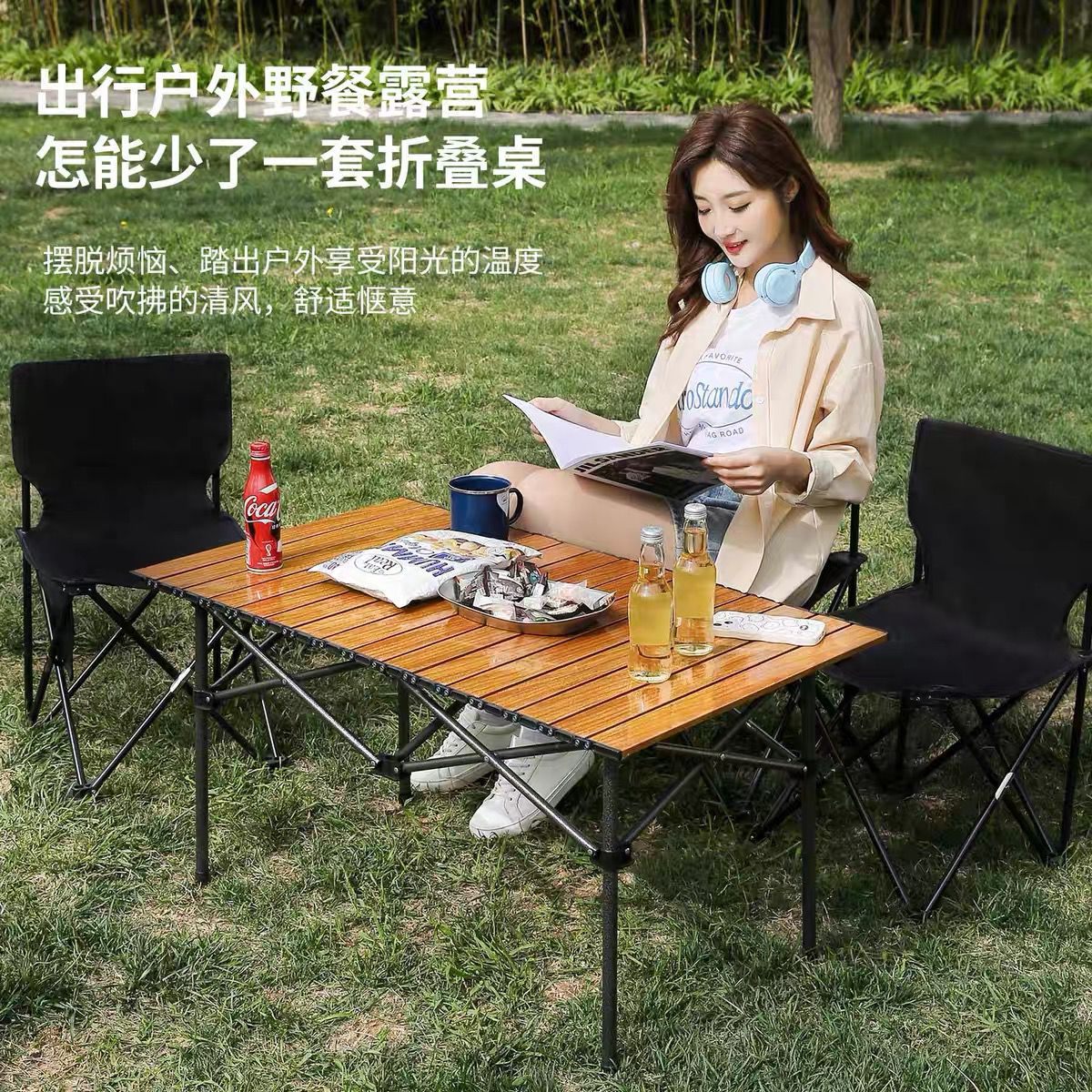 야외 접이식 테이블과 의자, 휴대용 자동차 탑재 자율 주행 피크닉 테이블, 초경량 바베큐 캠핑 세트, 고탄소강 테이블