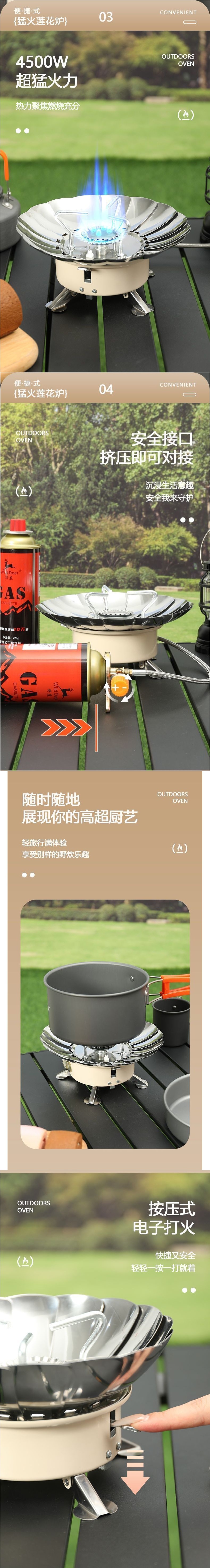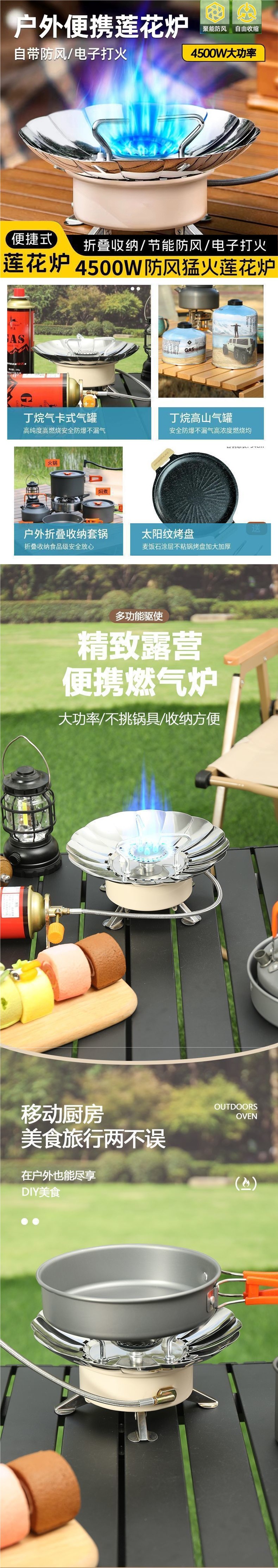 • **[업그레이드 모델] 방풍 연꽃 난로 [장기 가스 공급_4500W] + 카세트 가스 탱크 4개*