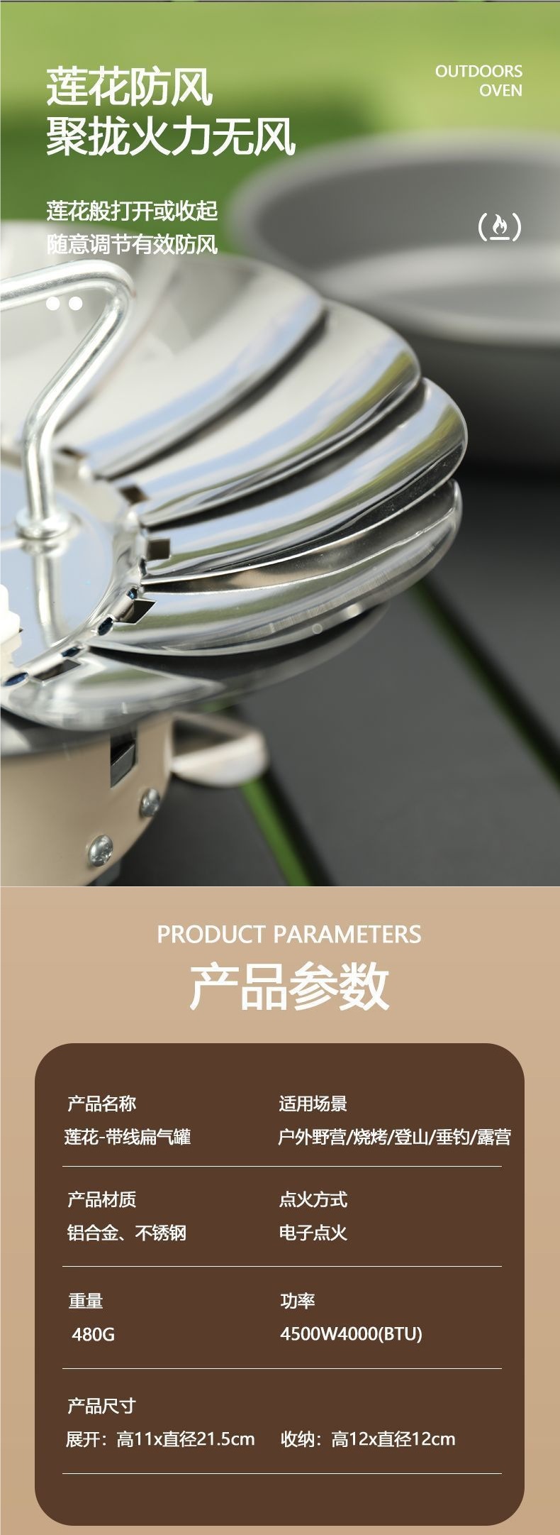 • **[겸용 럭셔리 모델] 방풍 연꽃 난로 + 어댑터 [긴 평면 가스 탱크에 연결 가능]*