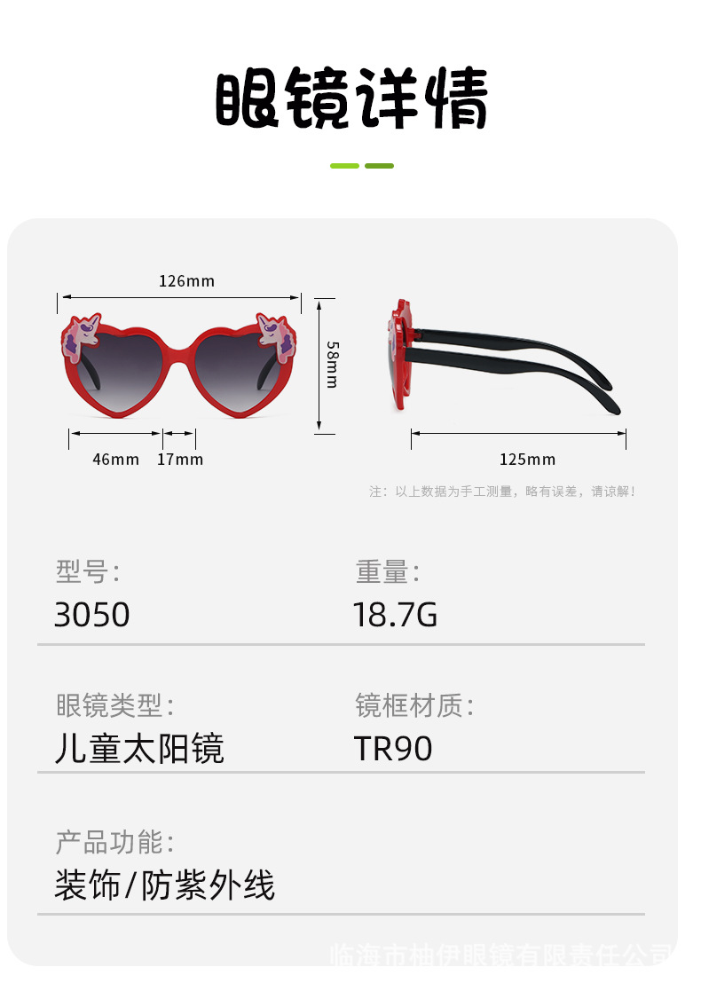 어린이 사랑 안경, 귀여운 흰색 말, 남자 아기 선글라스, 패셔너블하고 세련된 소녀 선글라스, 제조업체 재고 있음