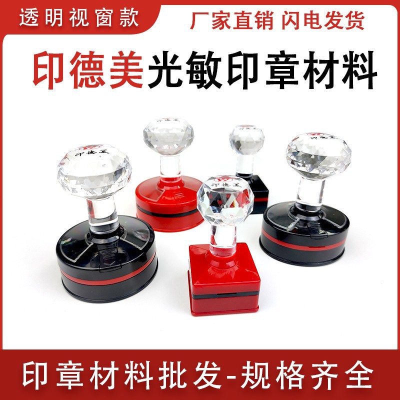 Yin De Mei YH-SJ 투명 창 감광성 인감 재료 도매 새로운 크리스탈 핸들 인감 재료 원형 인감
