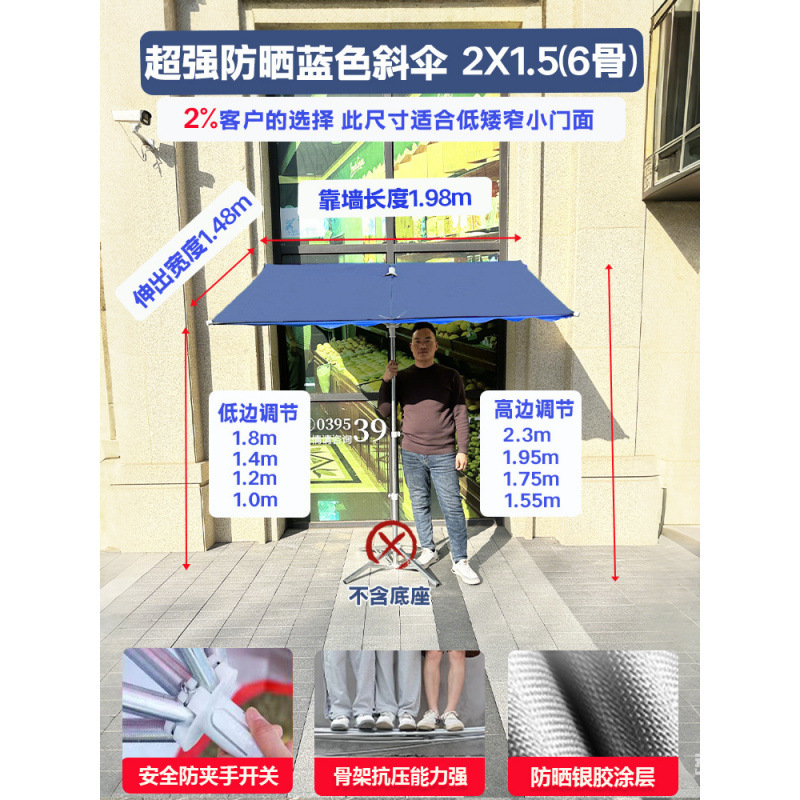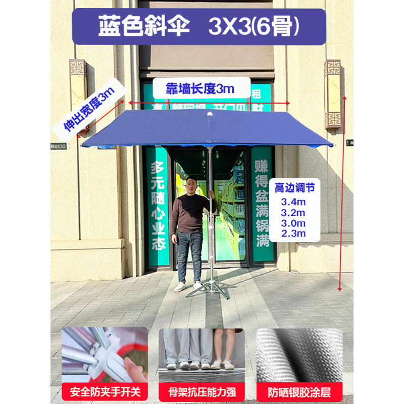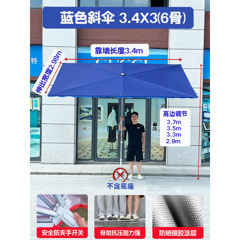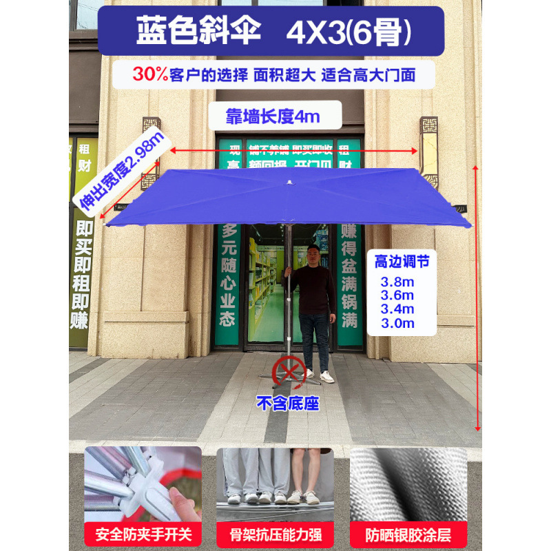 • [경사우산] 파란색 4X3 두꺼워진 6개 갈비뼈 + 접이식 베이스 (대형우산, 힘이 약해서 촬영시 주의하세요)