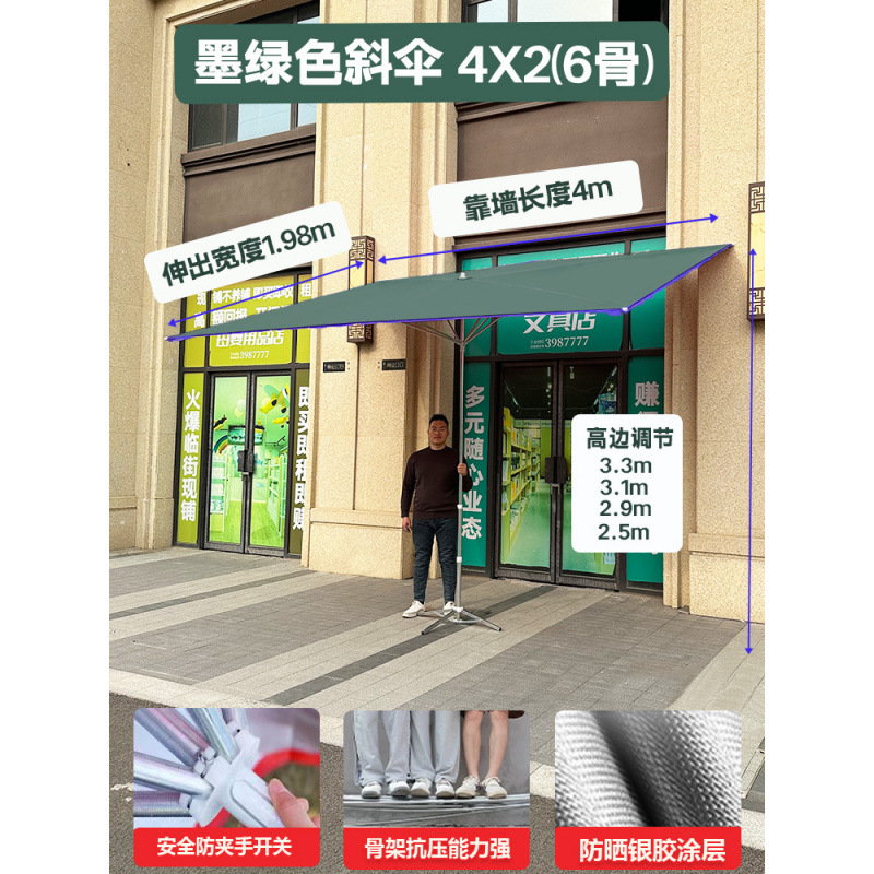 • [경사우산] 짙은 녹색 4X2 두꺼워진 6개 갈비뼈 + 접이식 베이스 (비스듬한 면이 좁음)