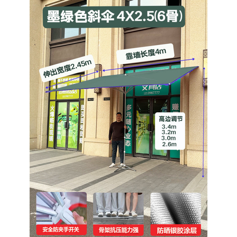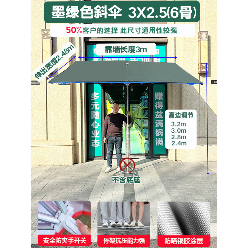 • [경사우산] 짙은 녹색 3X2.5 두꺼운 6개 갈비뼈 + 접이식 베이스 (점주 추천)