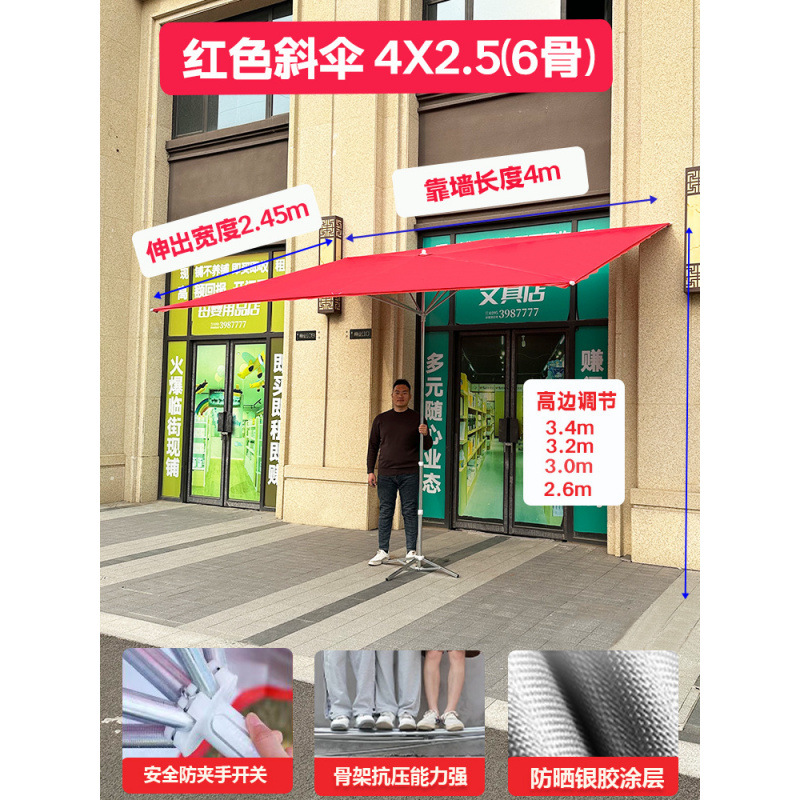 • [경사우산] 빨간색 4X3 두꺼워진 6개 갈비뼈 + 접이식 베이스 (대형우산, 힘이 약해서 촬영시 주의하세요)