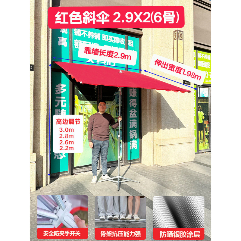 • [경사우산] 빨간색 4X2 두꺼워진 6개 갈비뼈 + 접이식 베이스 (경사면이 좁음)