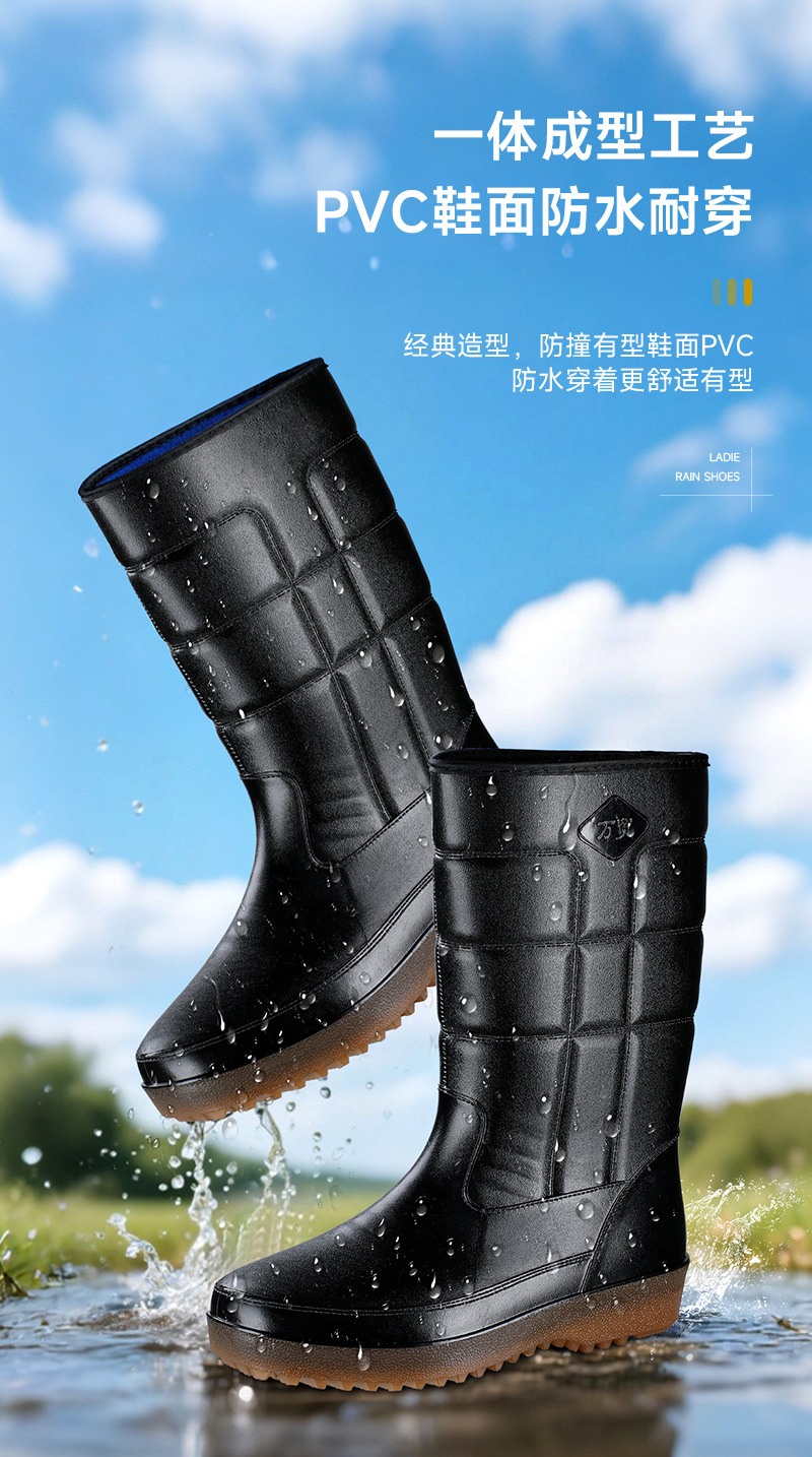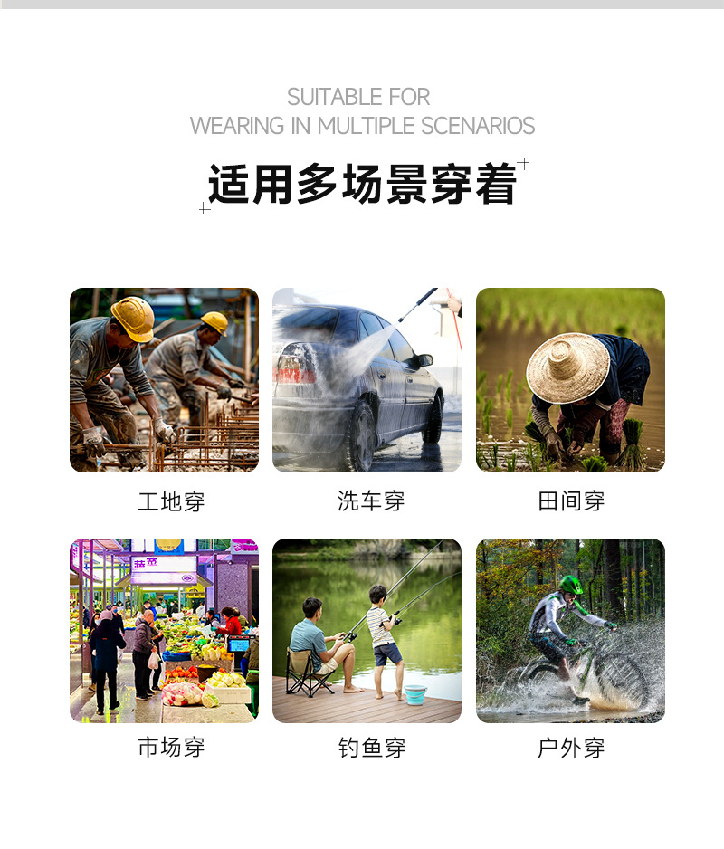 Jinshengmao 남성용 및 여성용 노동 보호 장화, 미끄럼 방지, 방수, 두껍고 내마모성 건설 현장 고무 신발, 장화, 하이탑 힘줄 밑창 짧은 부츠