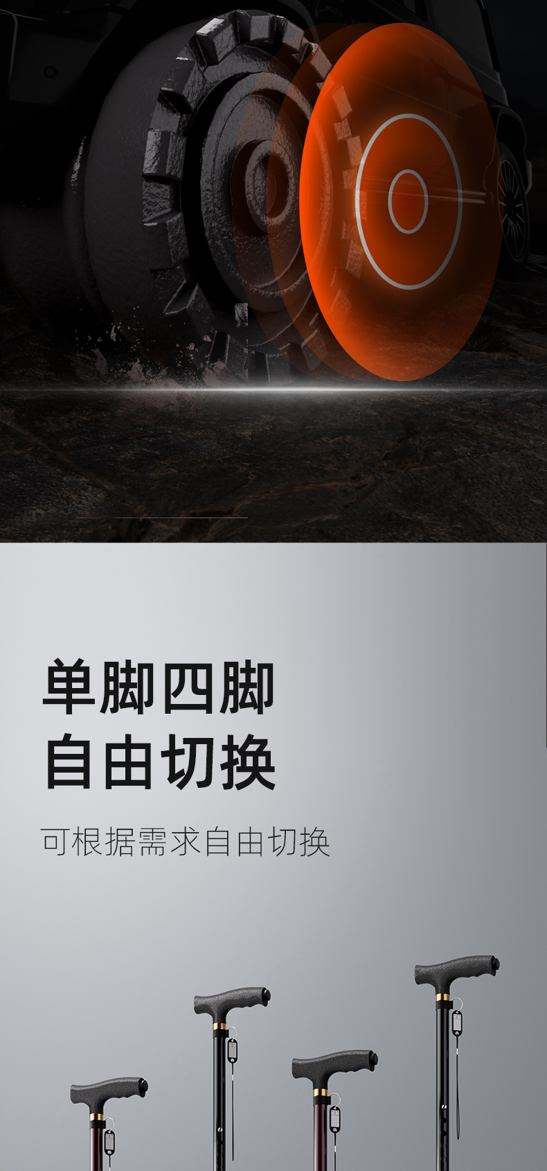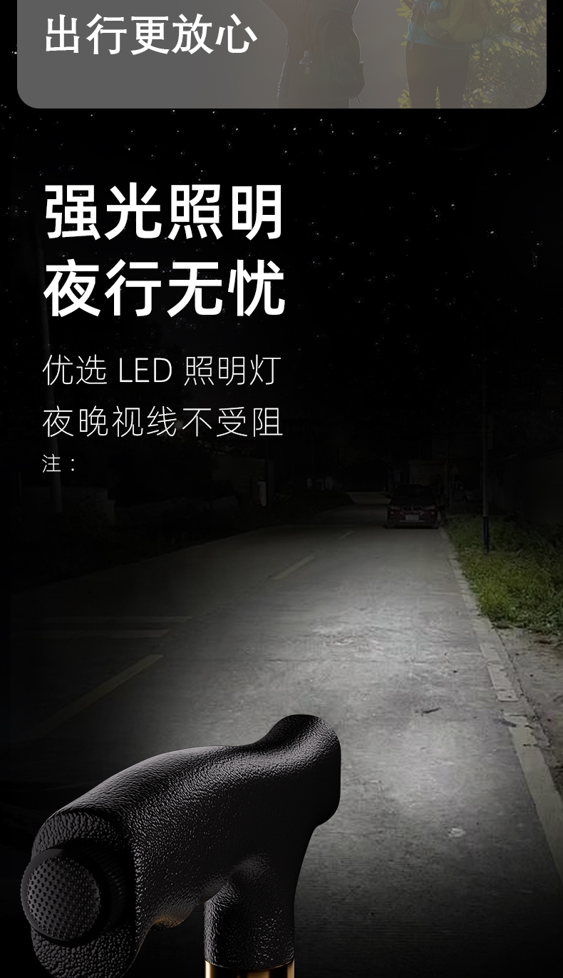• ₪黑色+增强防滑+带灯两用单脚+小四脚