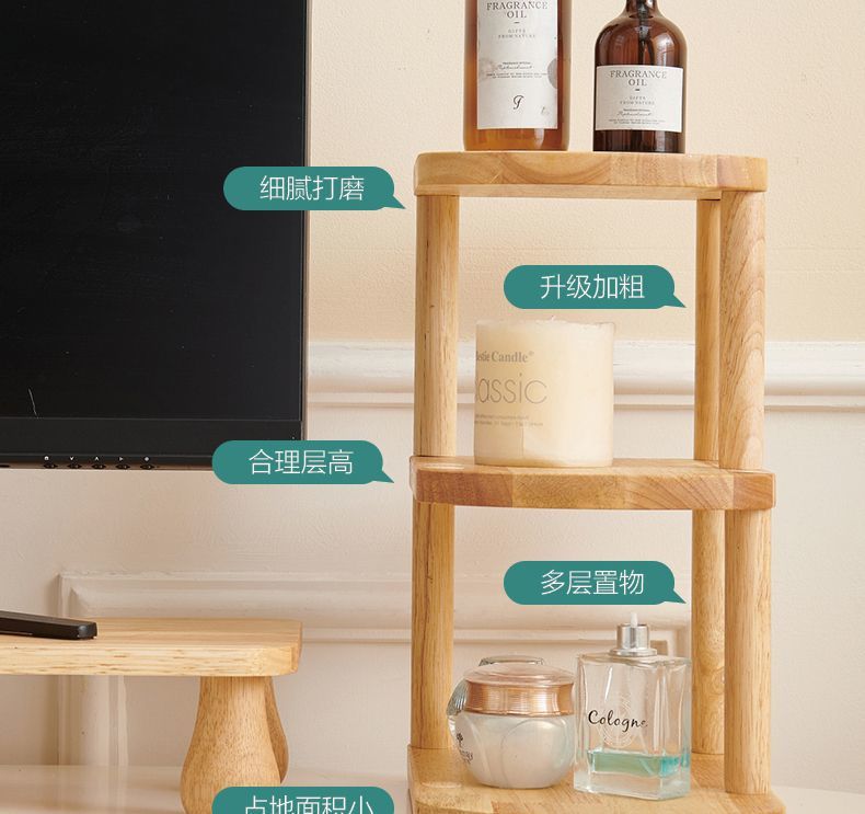 고무 나무 단단한 나무 데스크탑 스토리지 랙 TV 캐비닛 스토리지 랙 책상 책상 작은 스토리지 랙스토어 가기