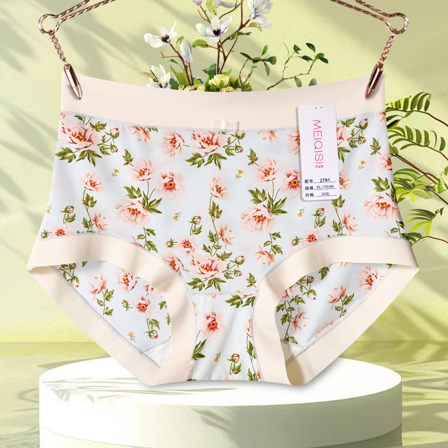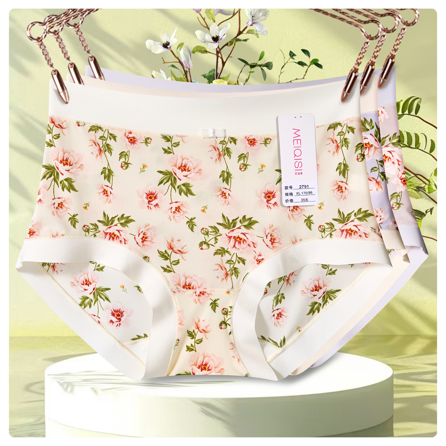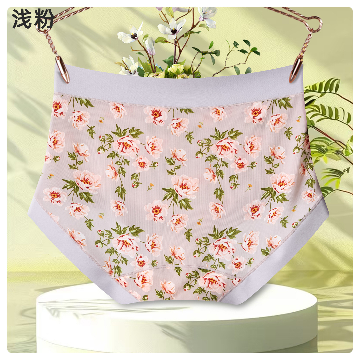 여성을 위한 새로운 여름 얼음 실크 속옷, 중간 허리, 매우 부드럽고 피부 친화적이며 흔적이 없으며 통기성이 있고 꽃무늬 항균 속건성 팬티스토어 가기