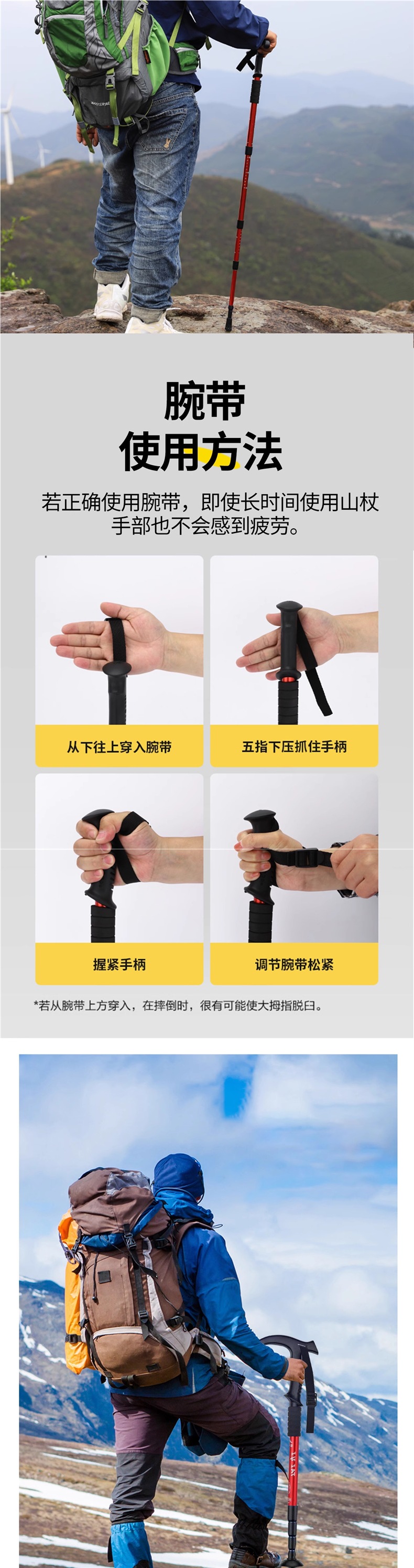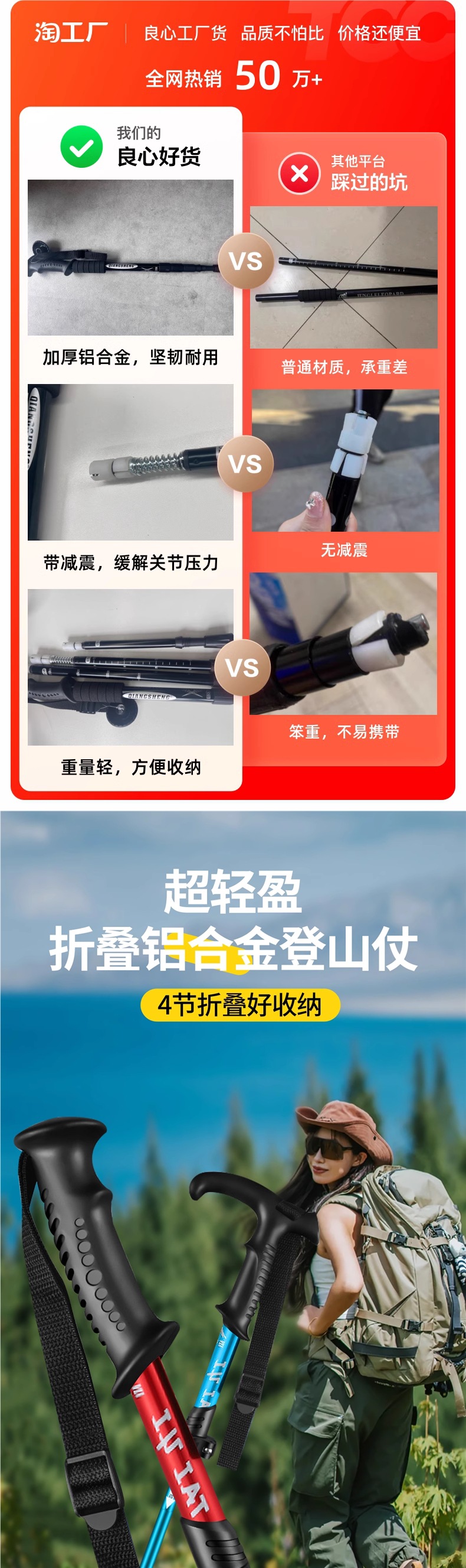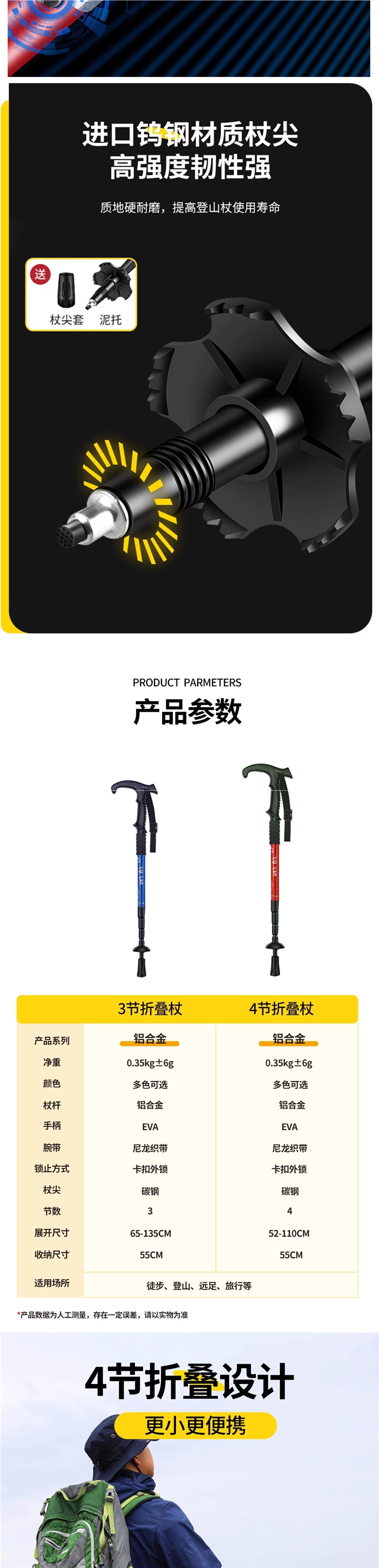 텔레스코픽 접이식 전문 야외 남성 및 여성 하이킹 및 등산 장비 지팡이 미끄럼 방지 휴대용 등산 스틱